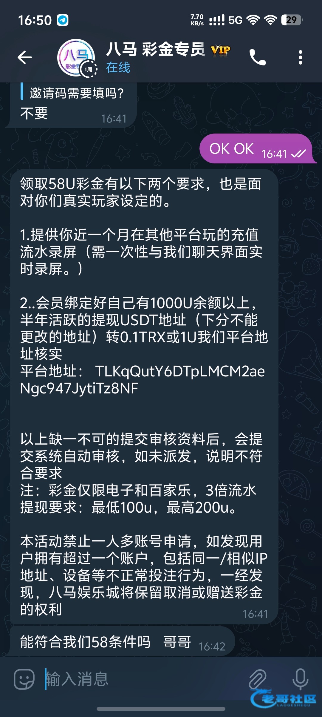 注册送5u联系@bmvip666 有一个提供流水跟US TD活跃这个需要这些我不够你们谁行谁上吧我没打出来