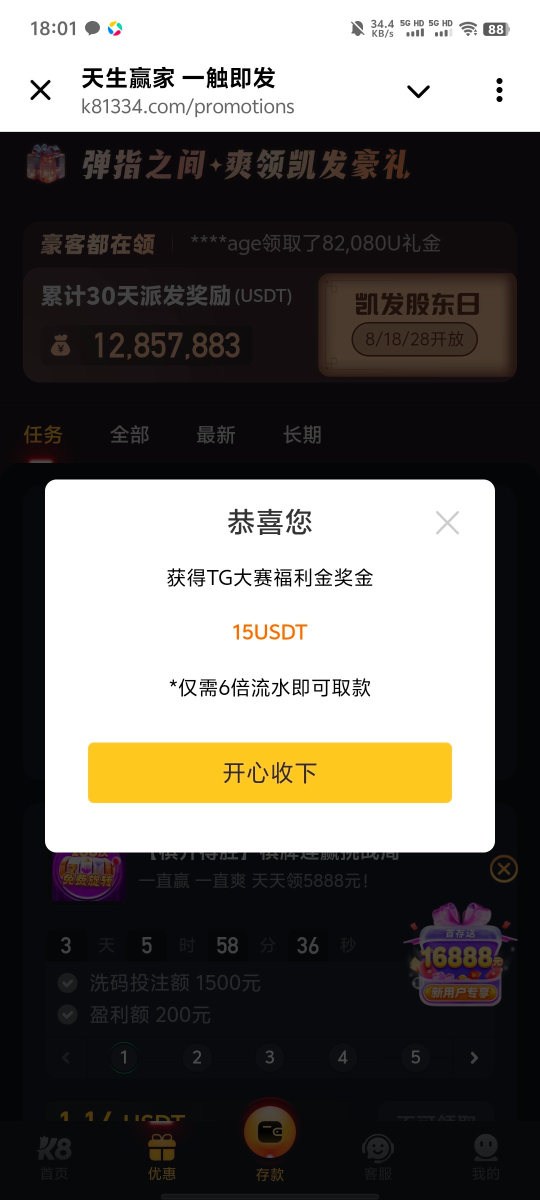 飞机打开:https://t.me/K8SLBOT?start=YzNtY2RsNzg4OA可以点机器人参赛 右下角任务领取门票赢了会直接跳转到平台的每个飞机号可以参与每日一次,每周一更新了每赢一次就可以领取第二张票,总共三张