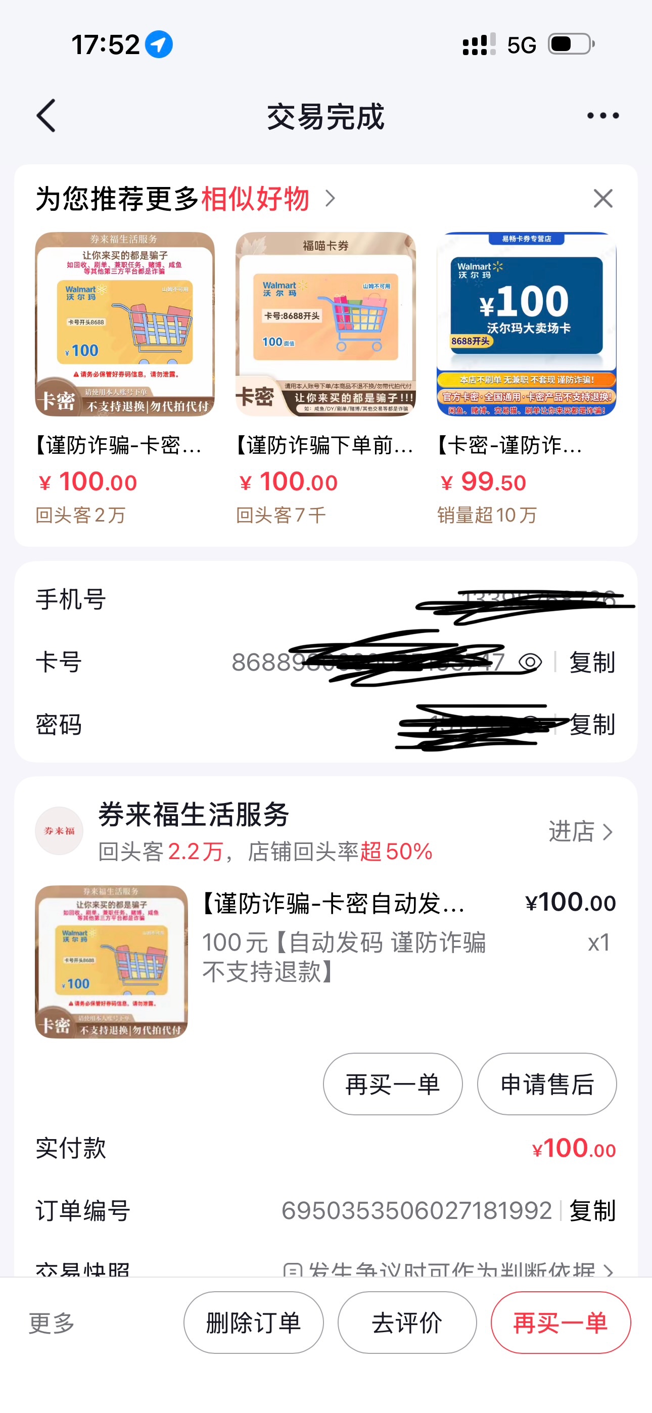 这家给卡密,买了几十秒被商家自己用了,投诉一点办法都没有