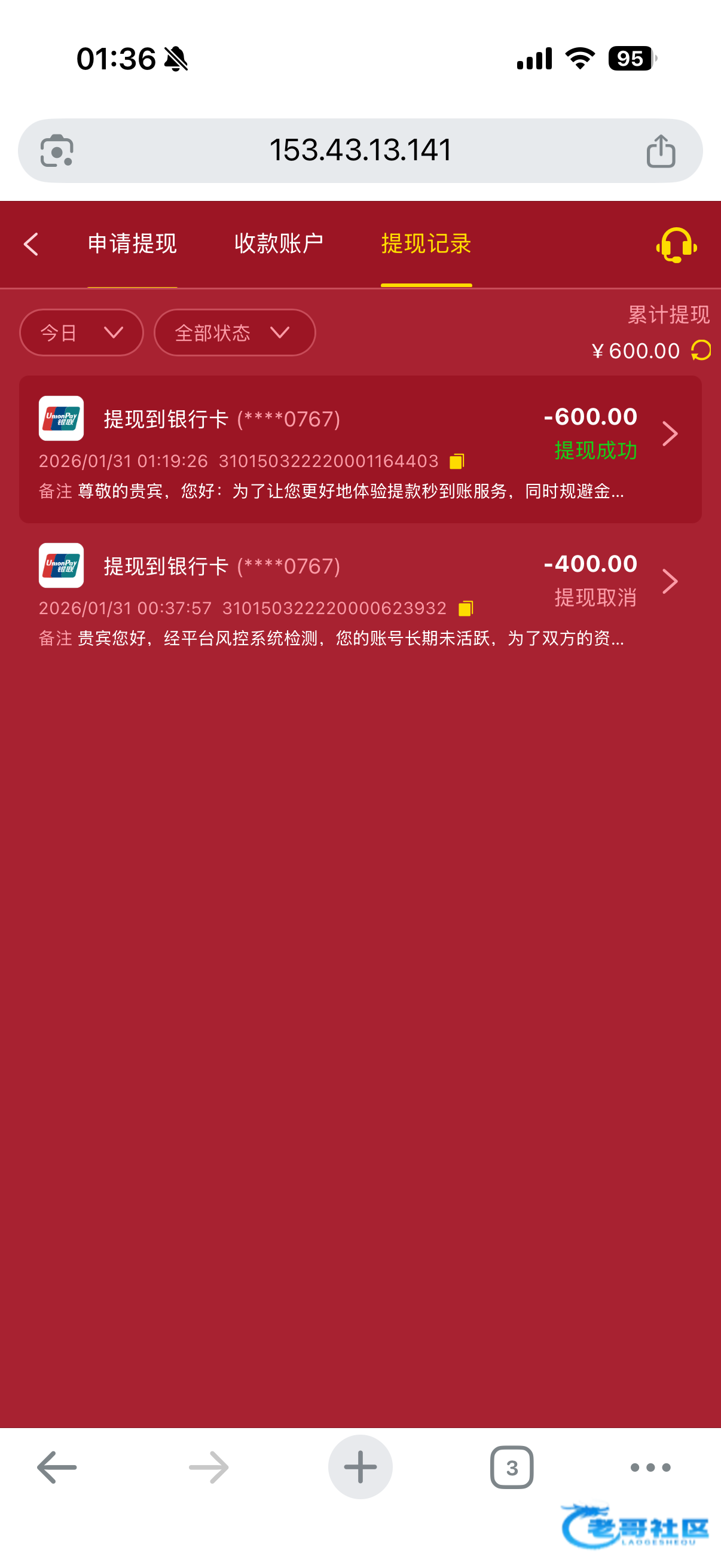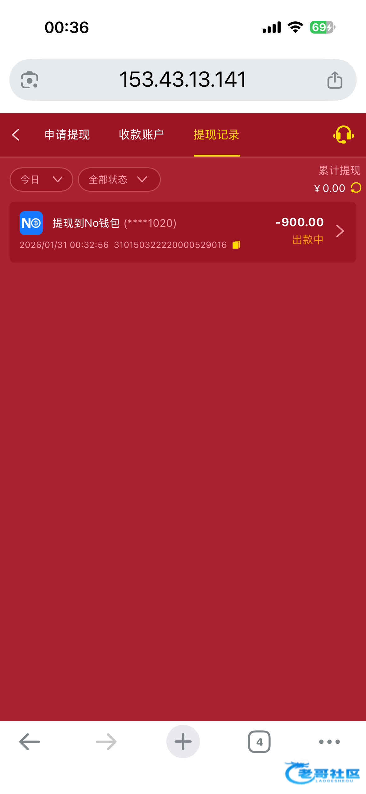 韭菜 ▶ 韭菜 提现一直不到,估计黑了妈的逼!不知道黑给不给退本 1月前