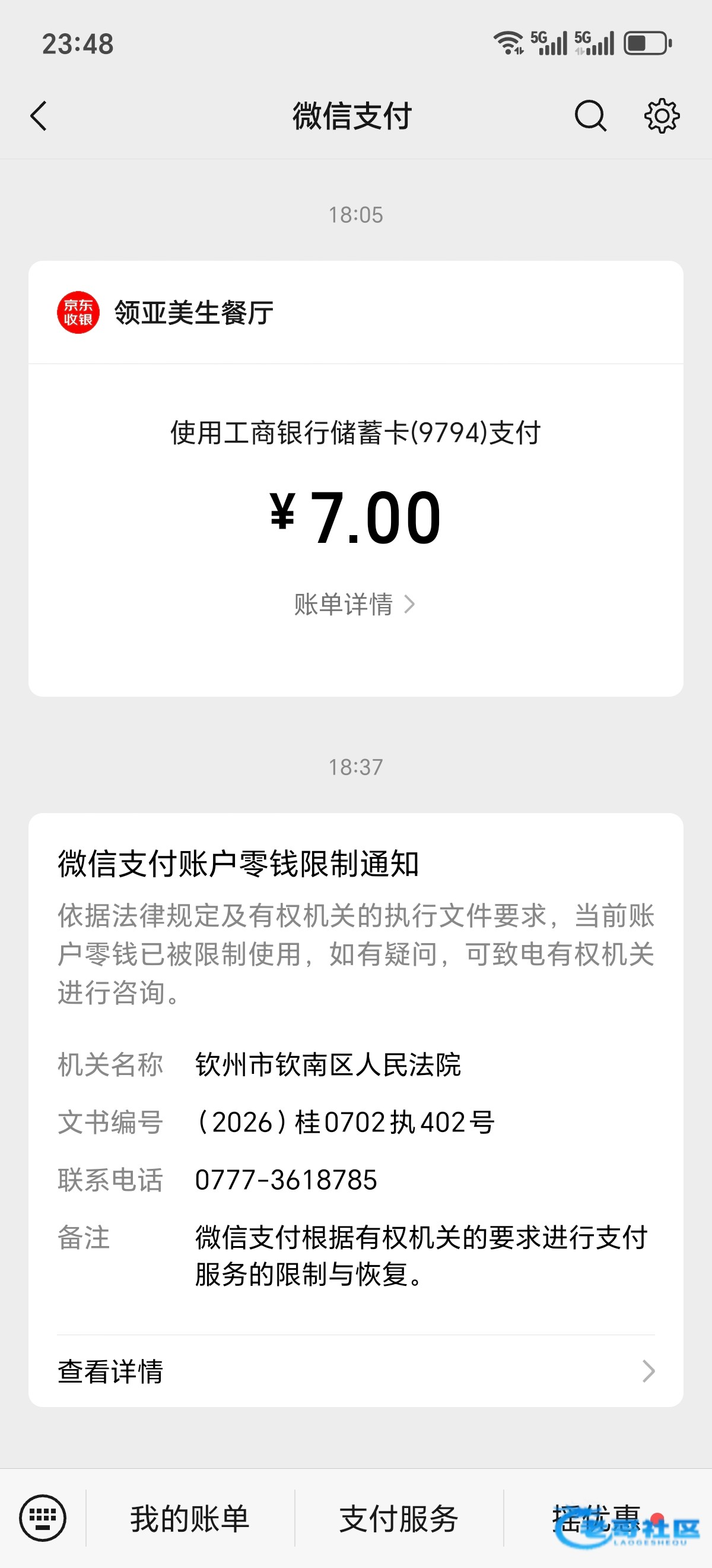 昨天想买瓶官方大水,支付失败,一看天塌了!名下的微信,支付宝,银行卡全部沦陷被冻了,一查,被华夏起诉强制执行了!