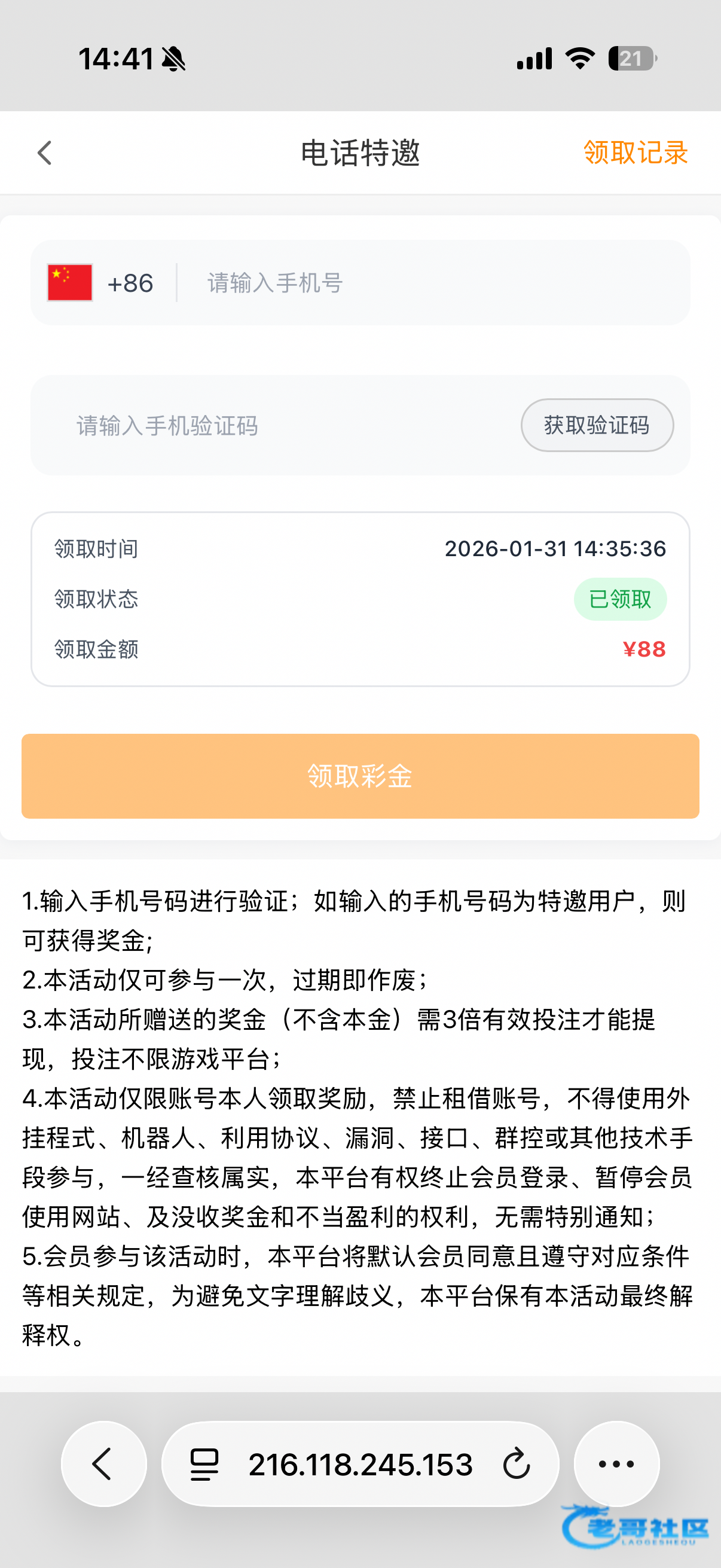 电话特邀,网址ld03.com,优惠里面短信验证