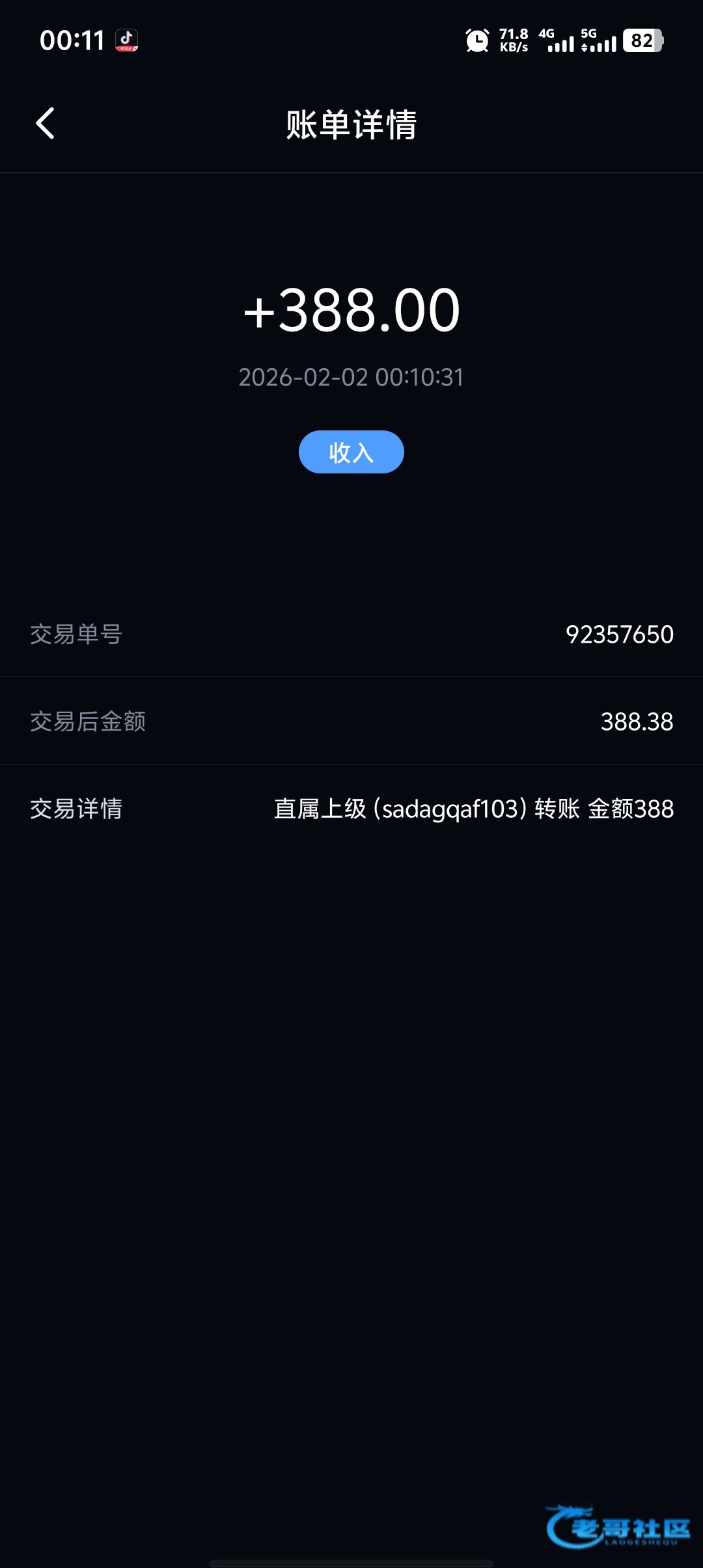 收到老哥188反现。要的彩金 没要U。我只说一句话。打狗认准老哥 就一个字 稳!