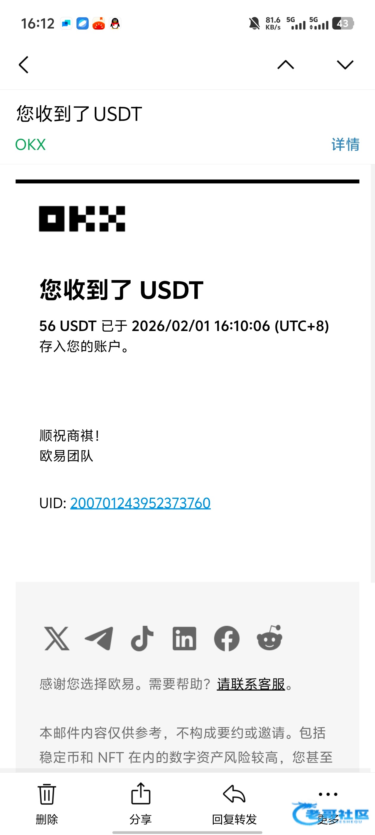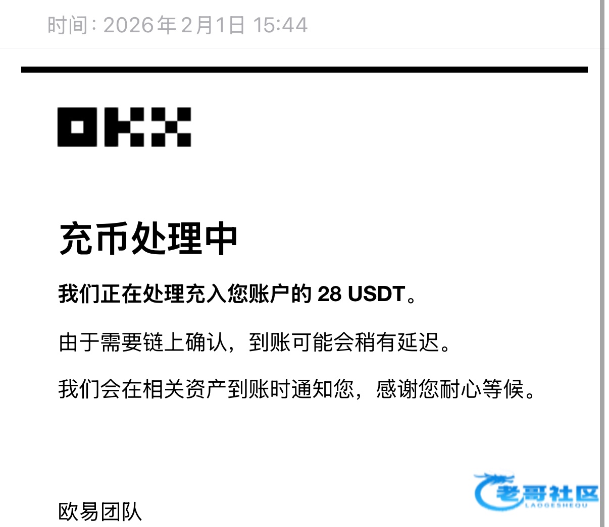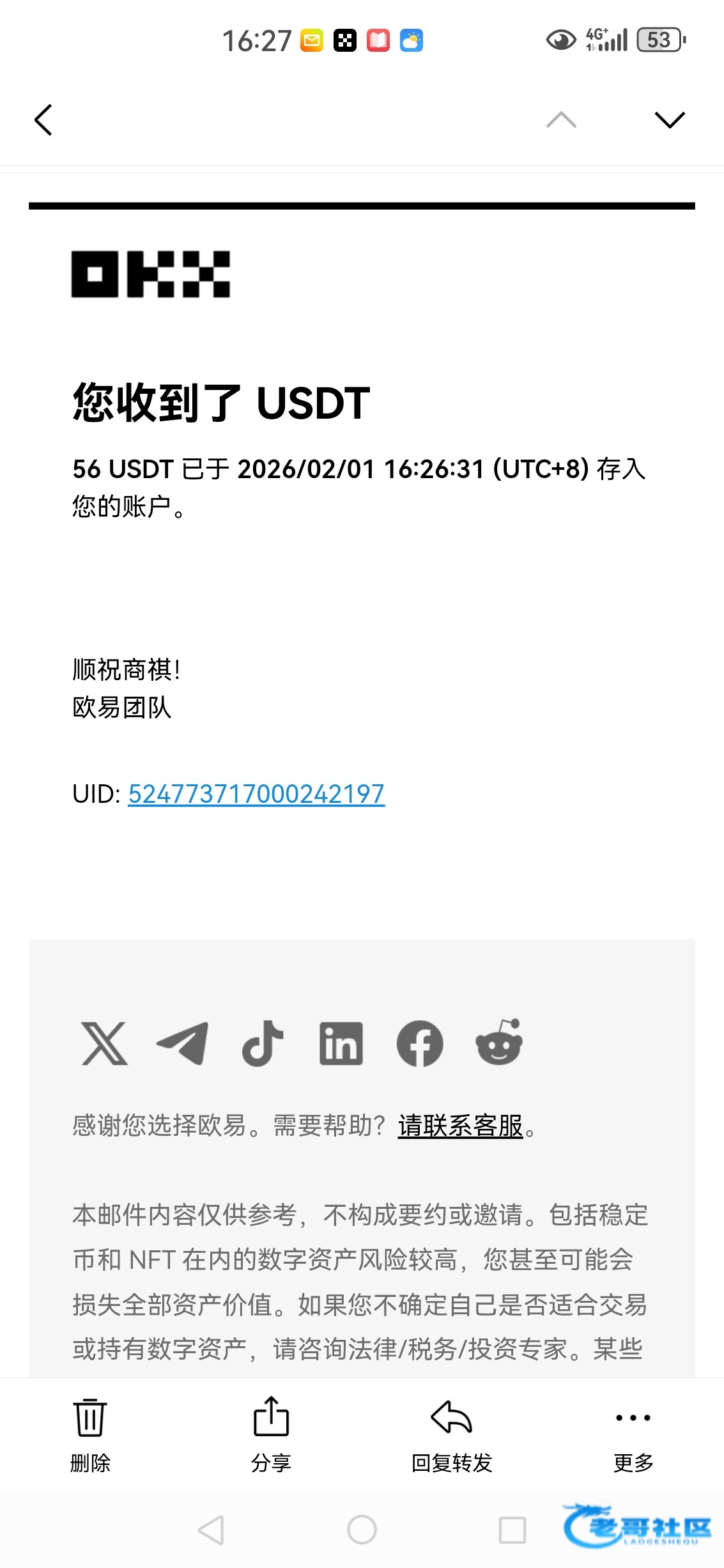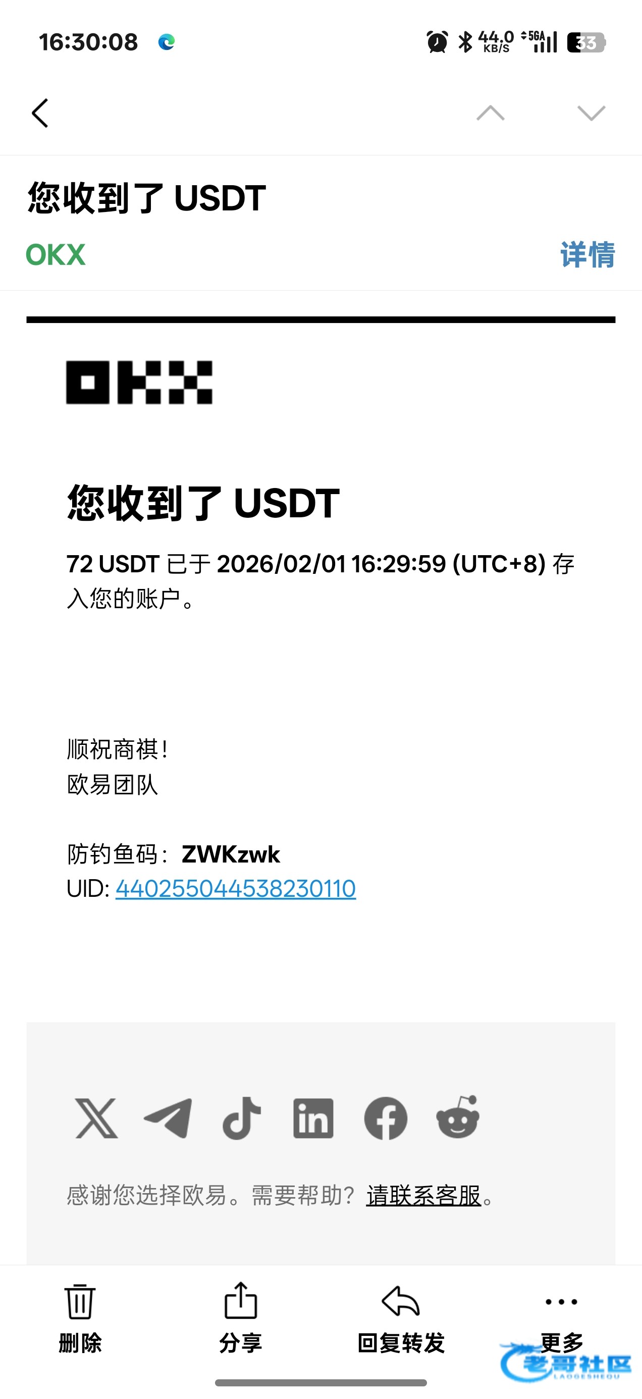 已经收到,老哥大气