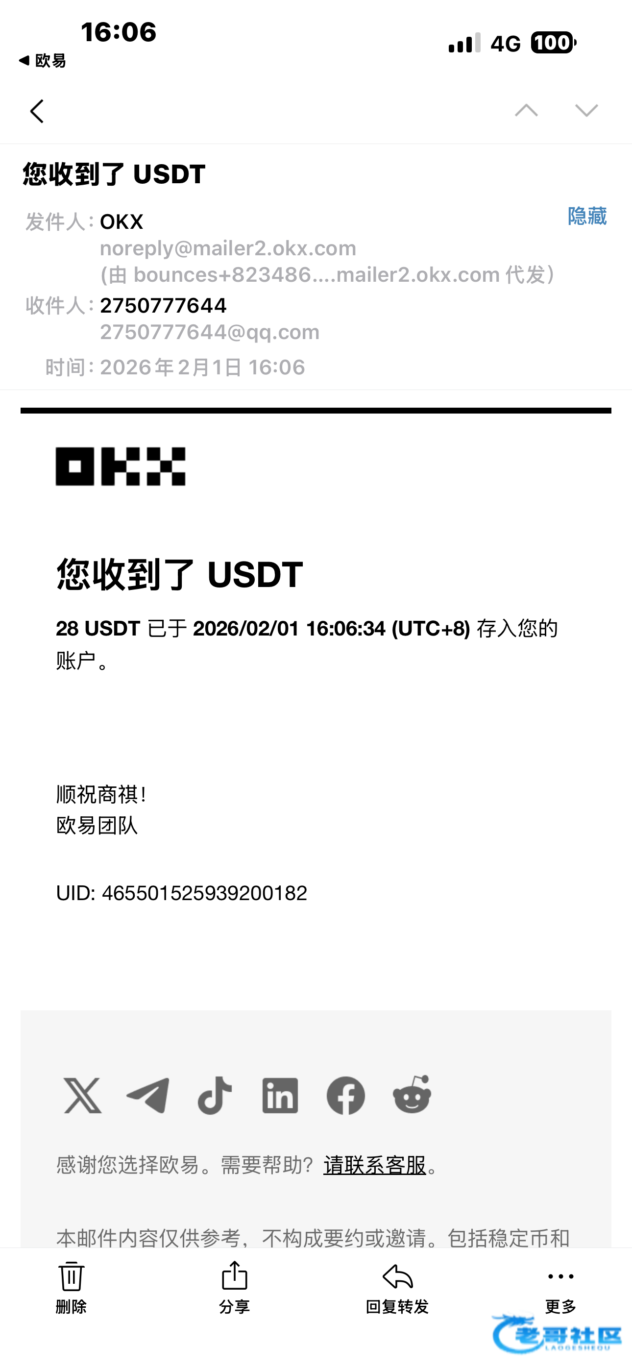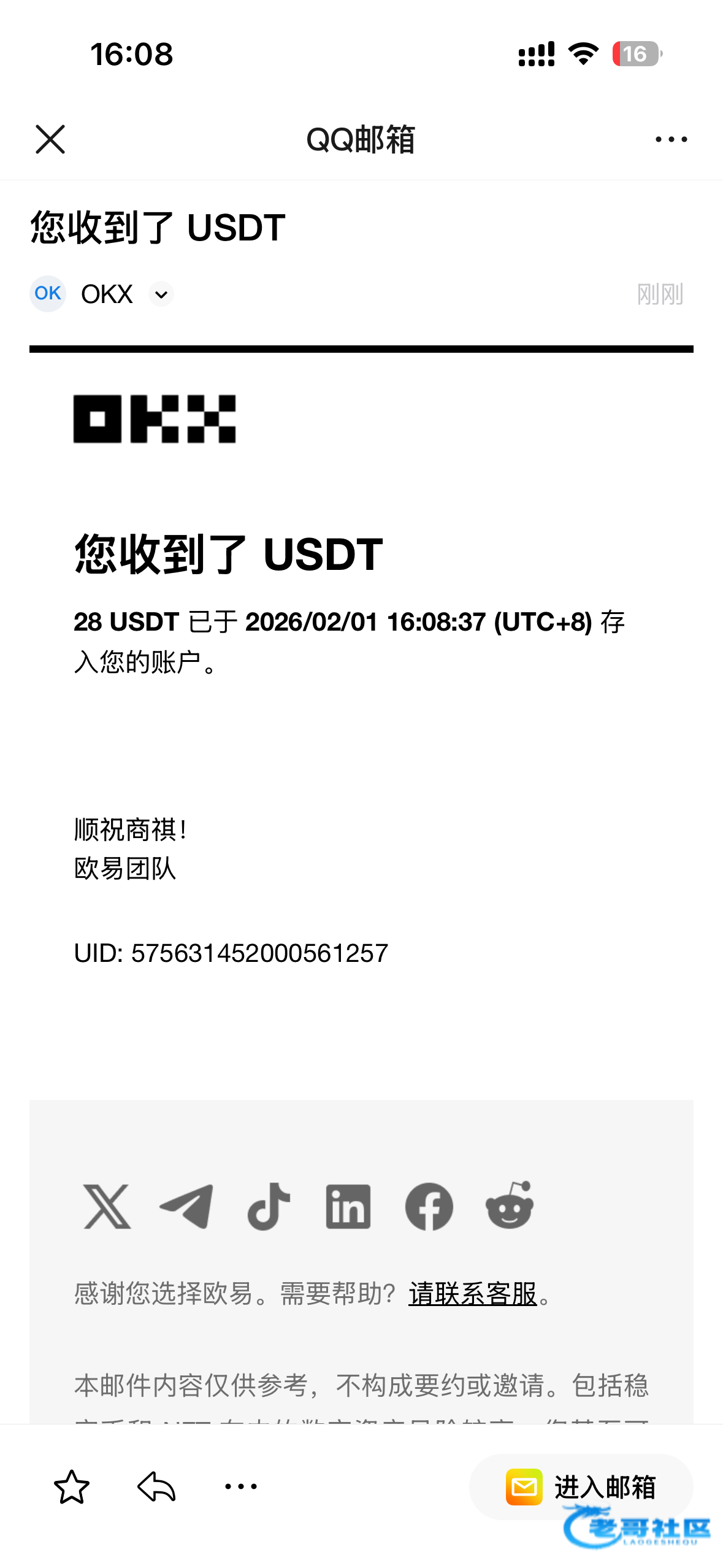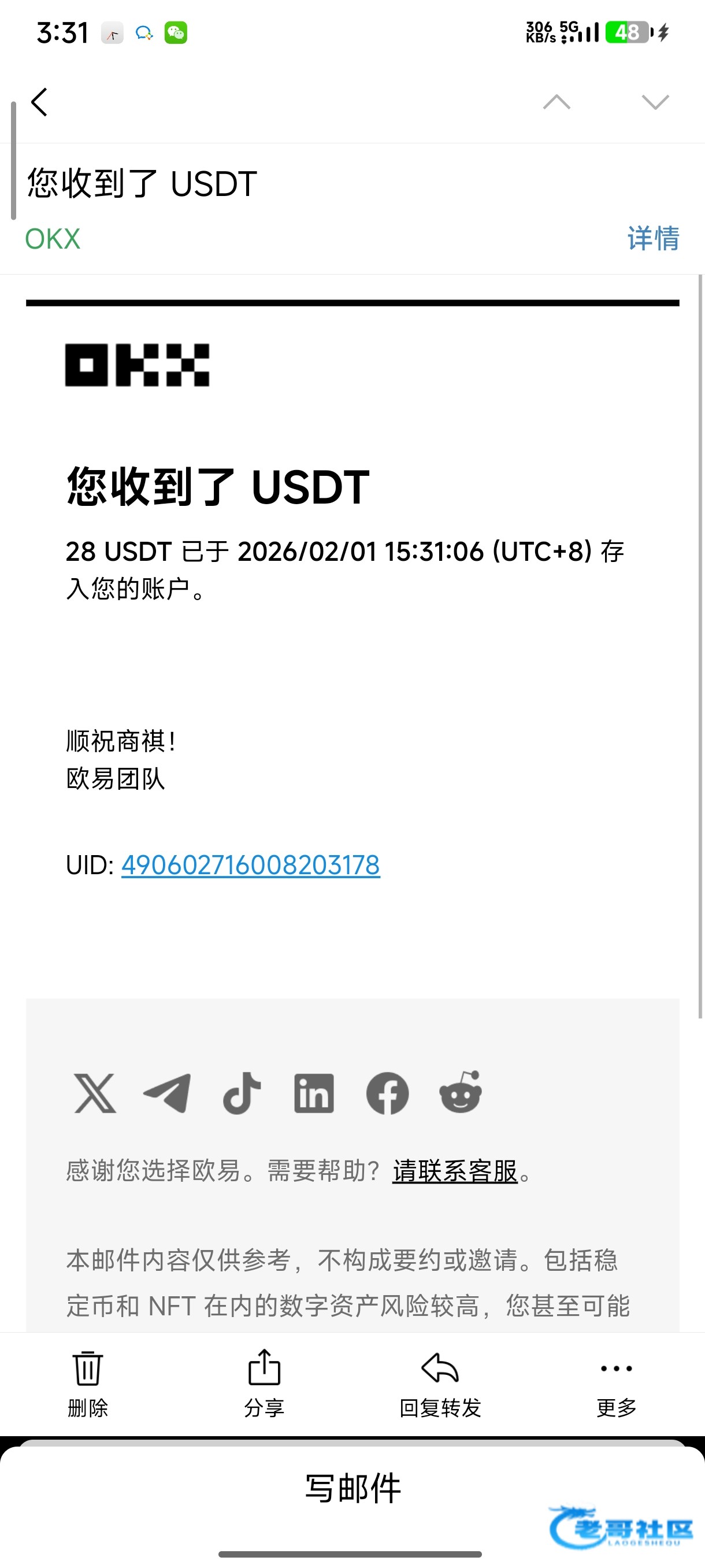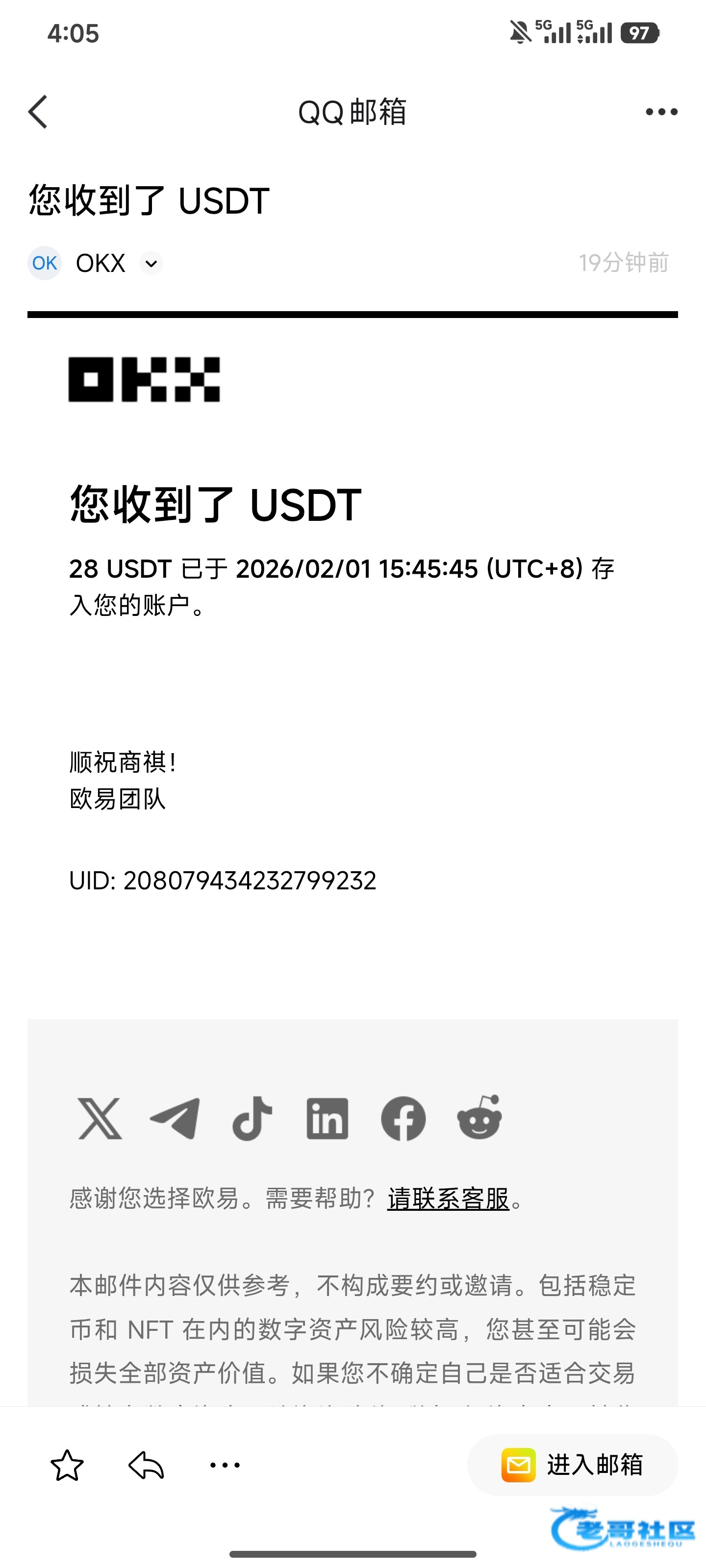 已经收到,老哥大气