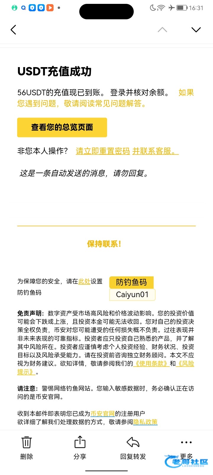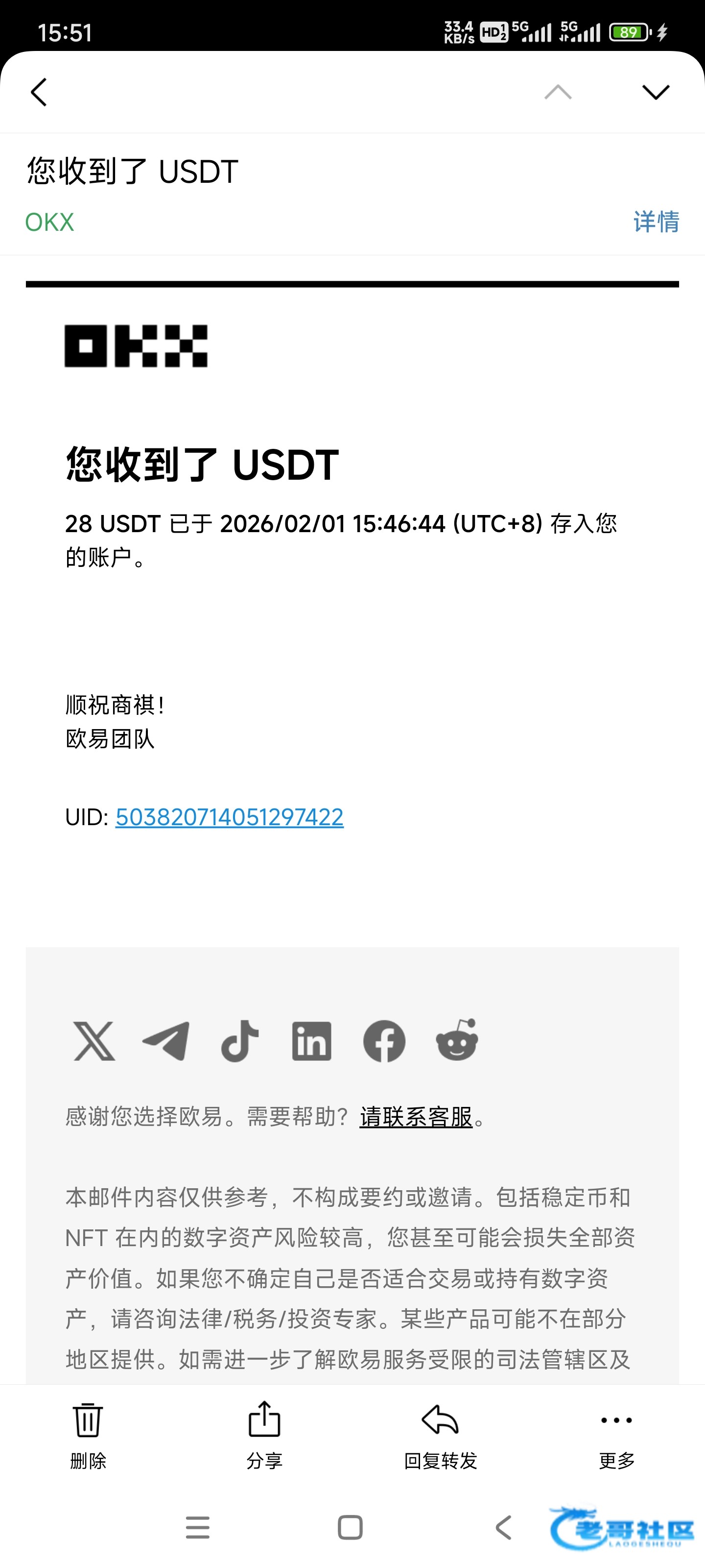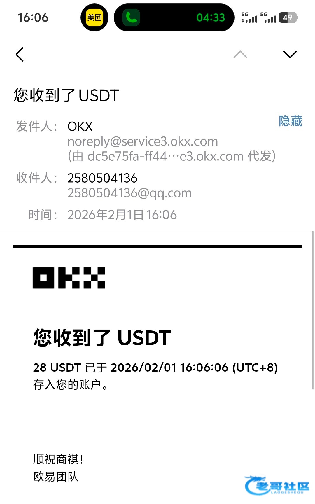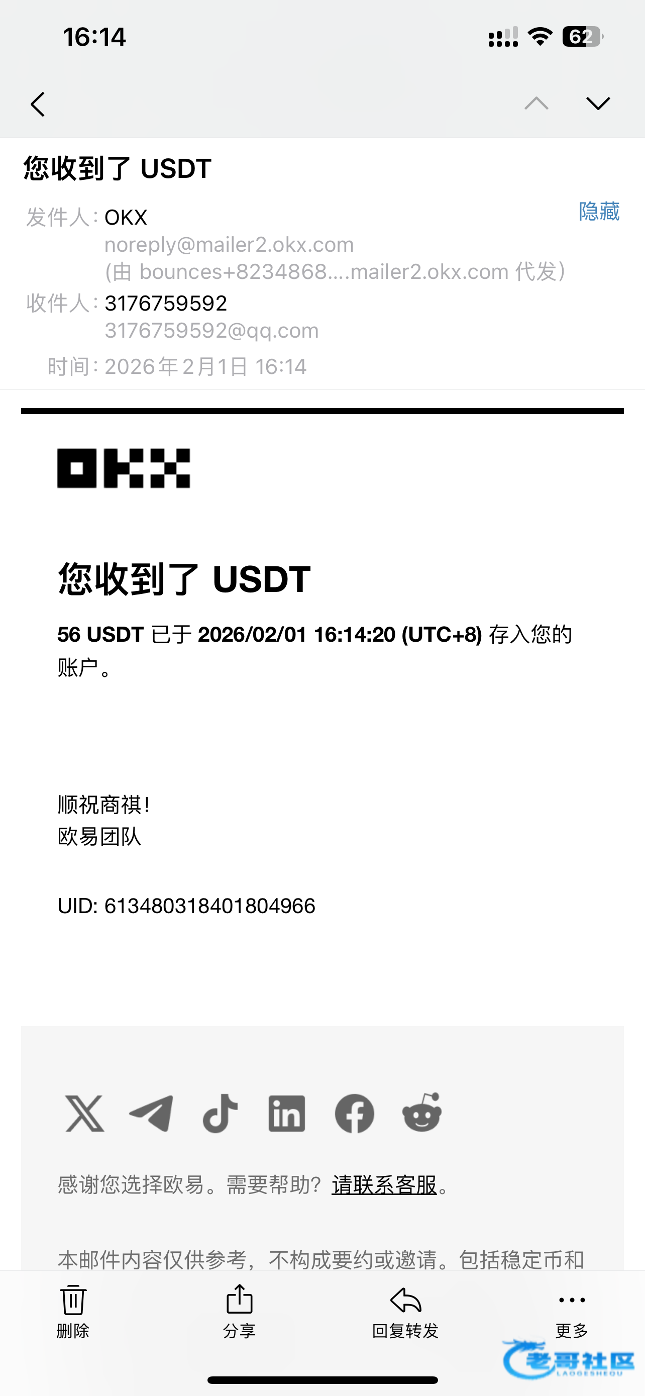 已经收到,老哥大气