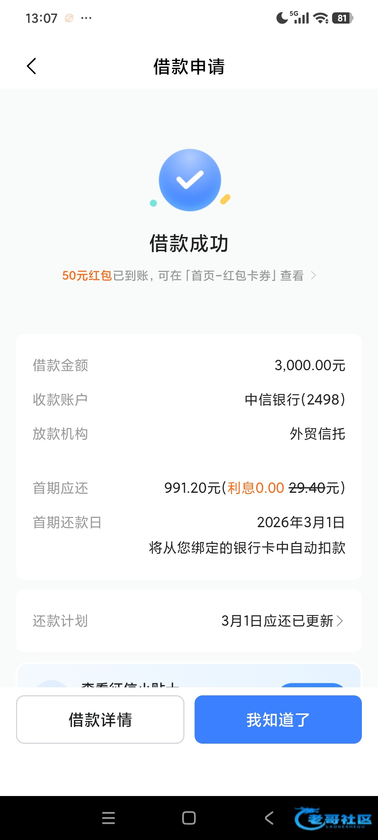 抖音放心借借款一笔送50红包 老哥们可以去看看 不知道要不要邀请 反正我去的时候直接显示借一笔给50 直接提现支付宝