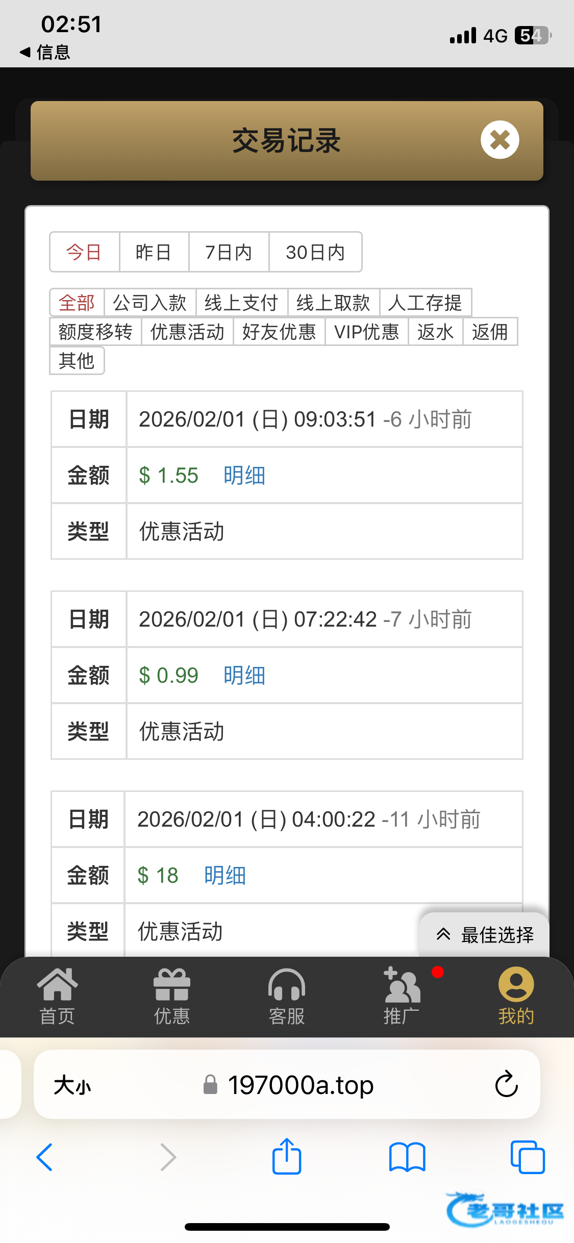 网址197.com https://m.197000a.top:18899/MemberCenter/Transaction 上个月有充值打码才有打哦 平时星期六星期天还能免费抢红包