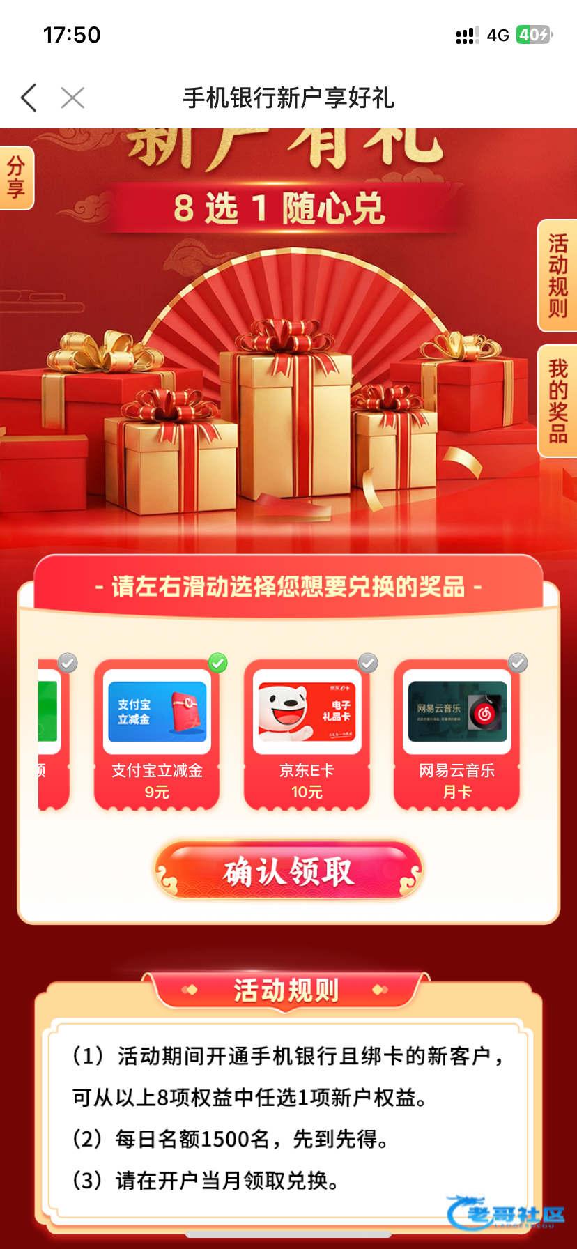 下载微商银行app页面点活动进去8选1自己选有微信支付宝立减金还有e卡