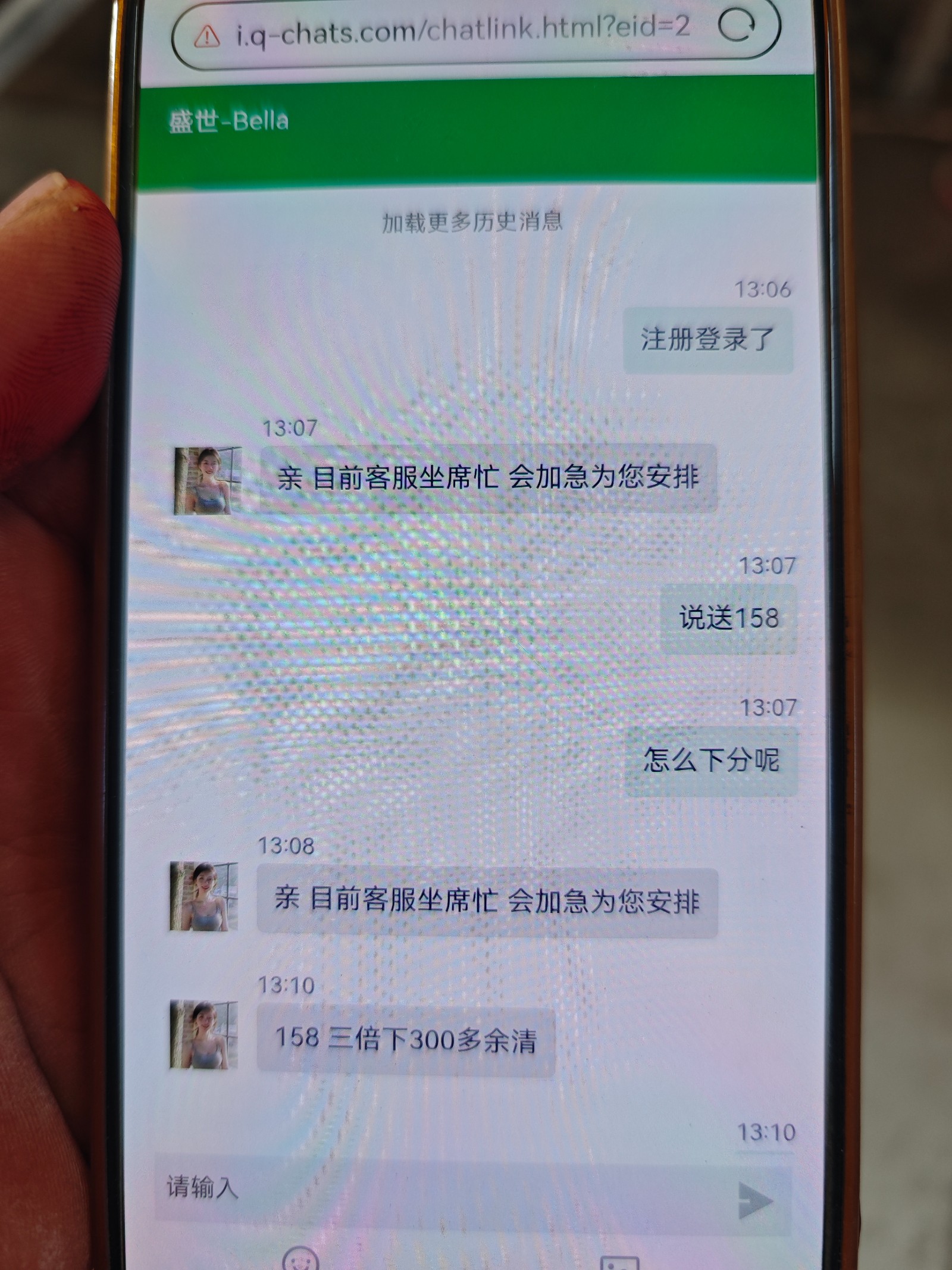 打电话来的,送158,3水下300,多余扣除。不限制游戏。我没打出来。网站是ssyl886.com注册推广码是388888你们自己去碰瓷试试看或者打了电话给你们漏接了。