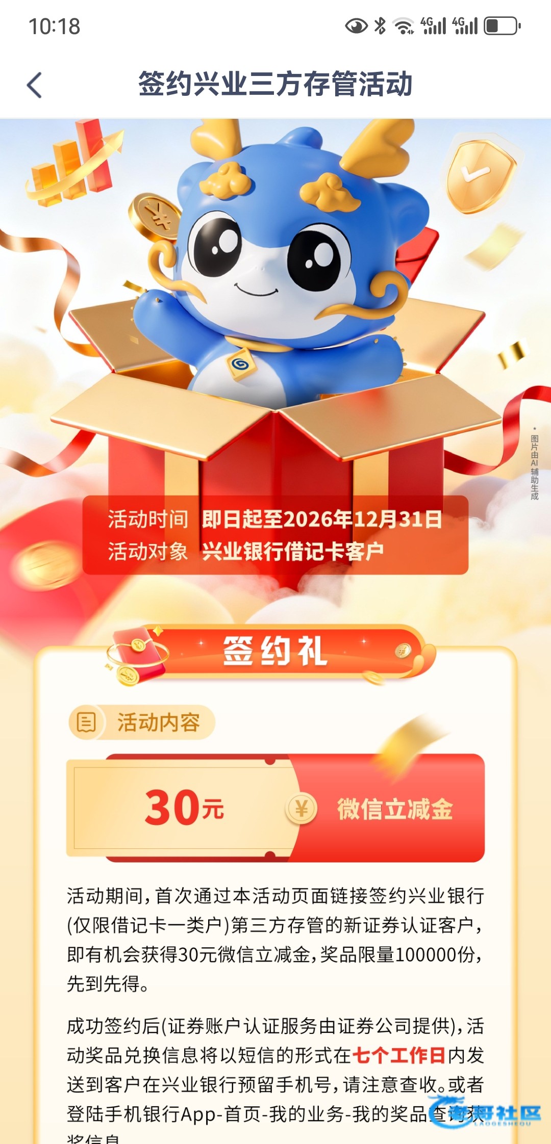 3,兴业签约存管活动,30立减金,这个有点少不如别的银行想弄的弄