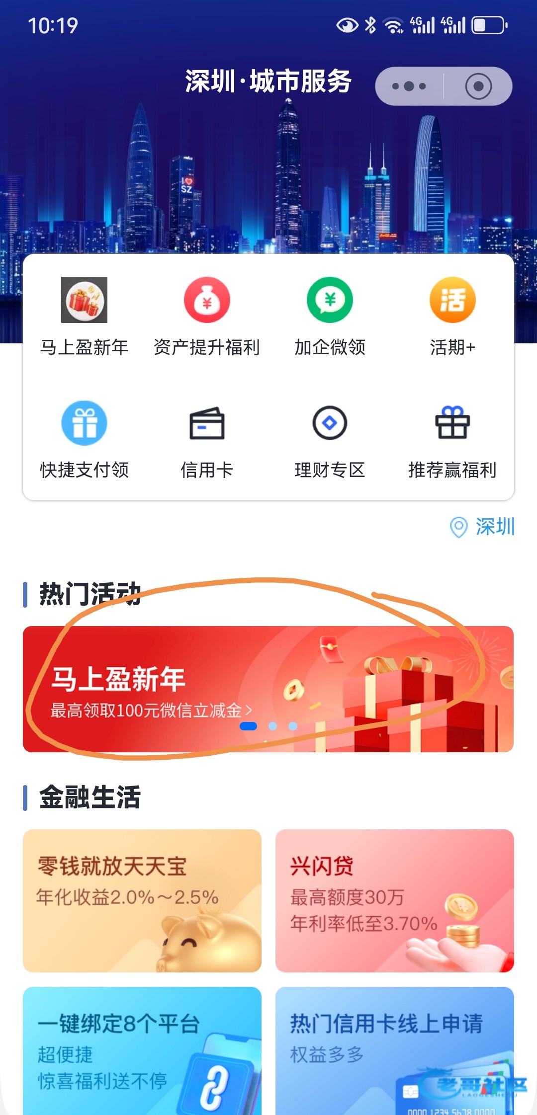 2,手机银行首页下拉到城市服务-活动中心-马上盈新年可以抽两次,最高88.8.最低18.8,我抽到了1.8和18.8