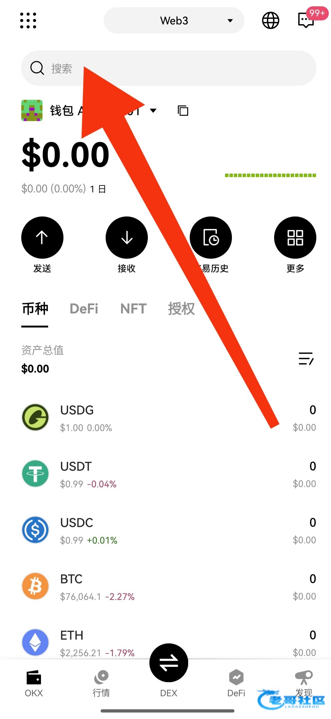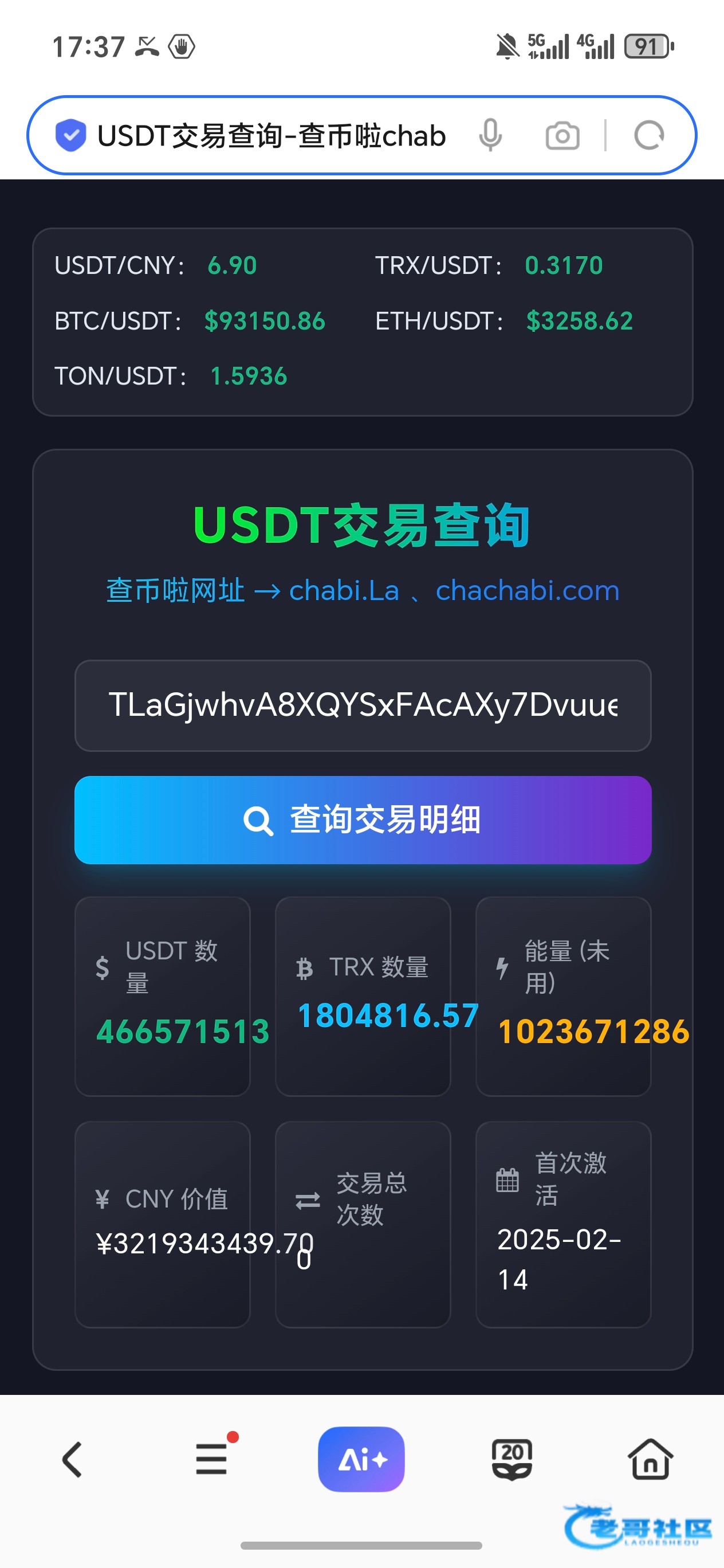 搜索框里输入狗庄U地址即可,点击还能看交易记录
