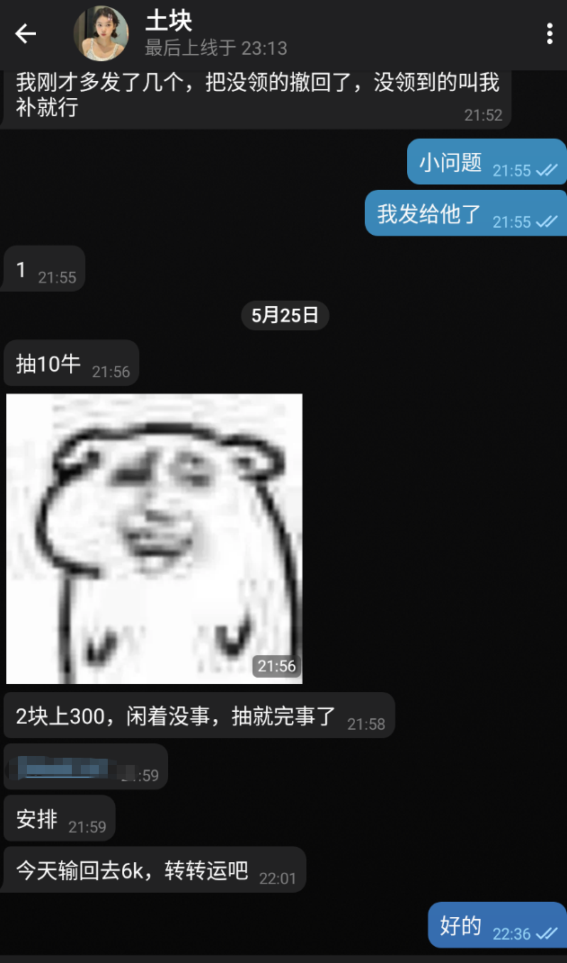 不过多介绍了,土块都眼熟,累计发了好多牛子了,数不清了,也经常在交流群里面给兄弟们团,请你们记住他,有收到过团的,站起来了,希望你们能记住这位兄弟,一个心意,一份猪脚饭,吃出男人的浪漫 6,这次投稿抽10发财牛,老规矩,你们先评论,晚点随缘我上交流群看谁在线的,我就抽谁,还没有进交流群的联系老哥拉你了,在此祝这位兄弟长虹咯!-lg00.cc