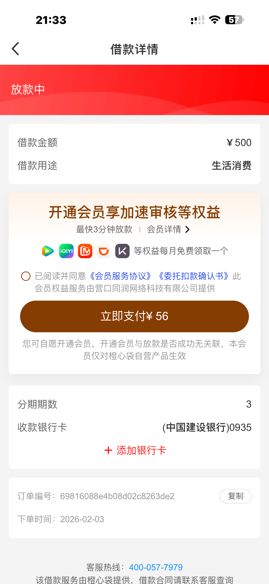 一天半,是不是不付56,不下款啊?