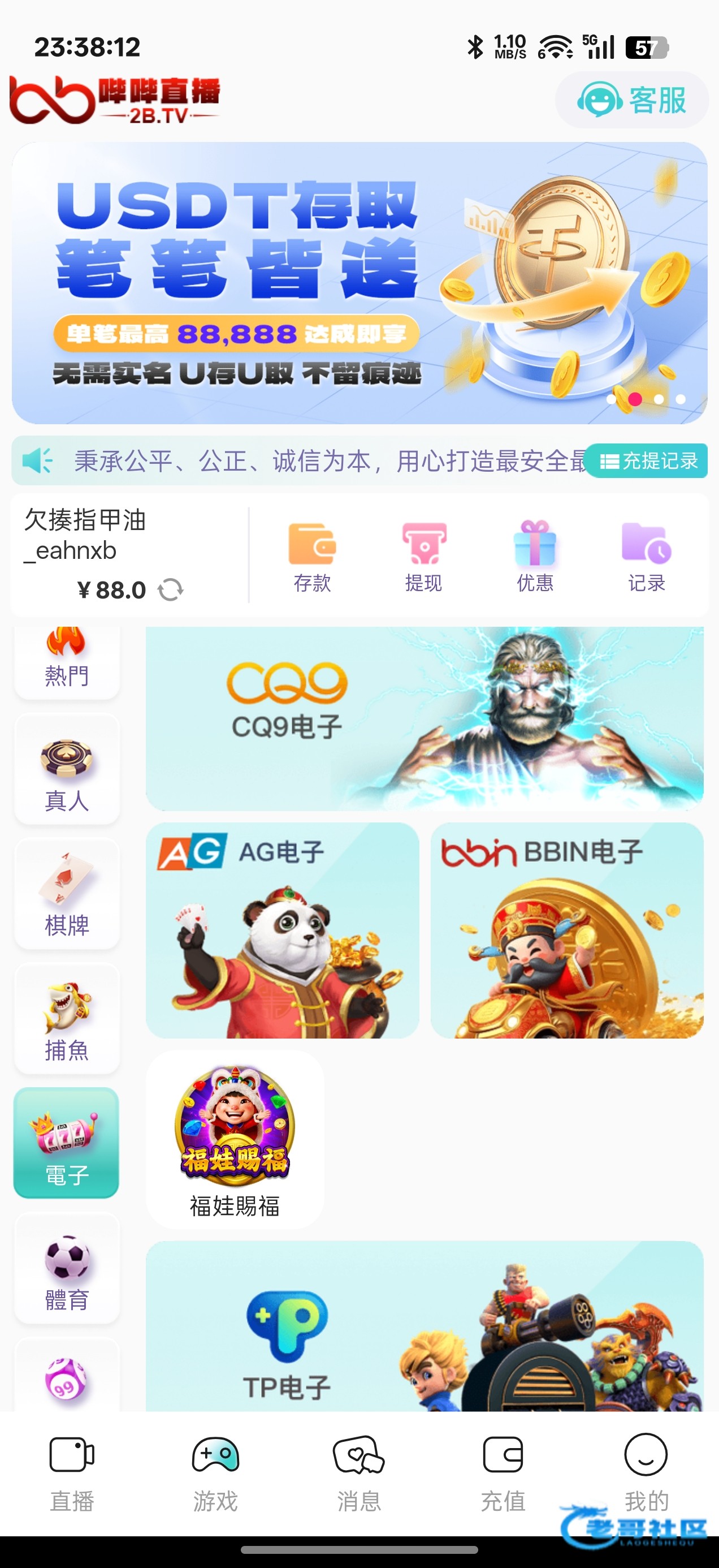 补个图,热恋我总共就冲过300,不过黄播我都是在直播间打快三的不拉电子