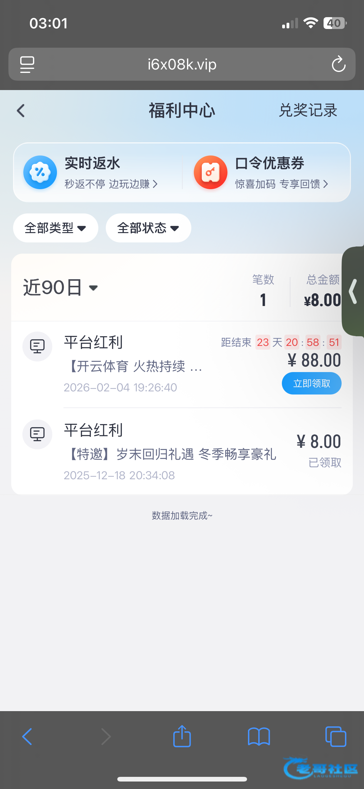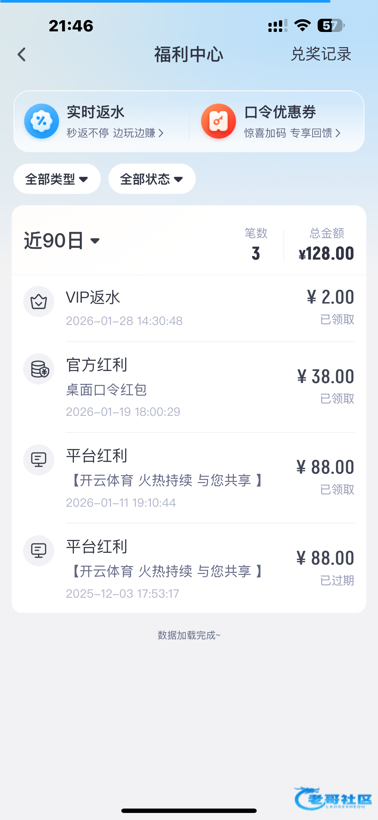 上个月领过一次88