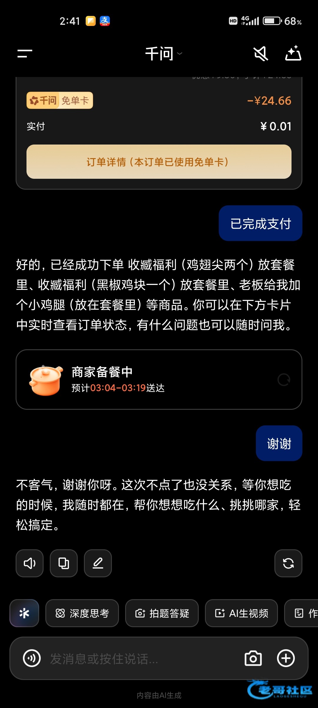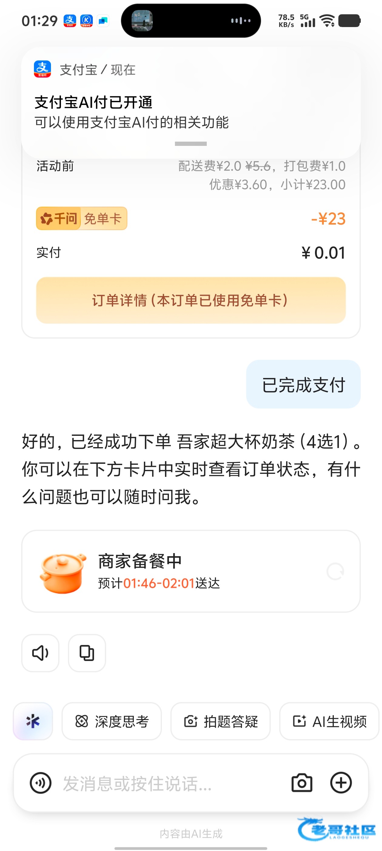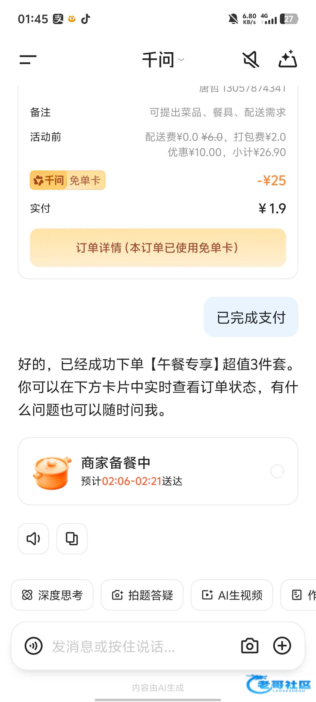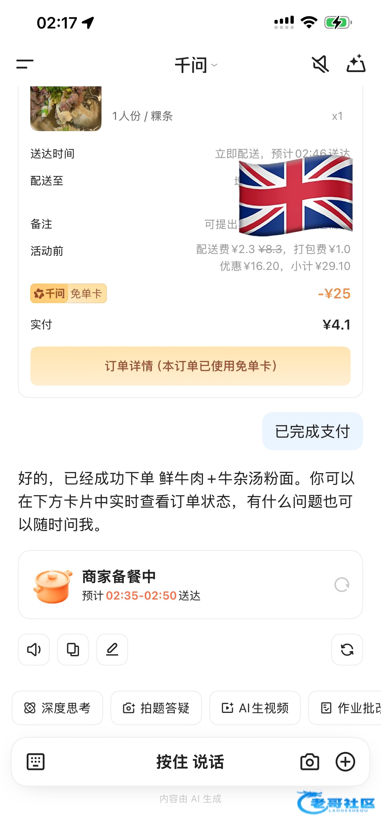 千问app对话框输入“帮我点杯奶茶” 给我点一个淘宝闪购的外卖免费门槛25内