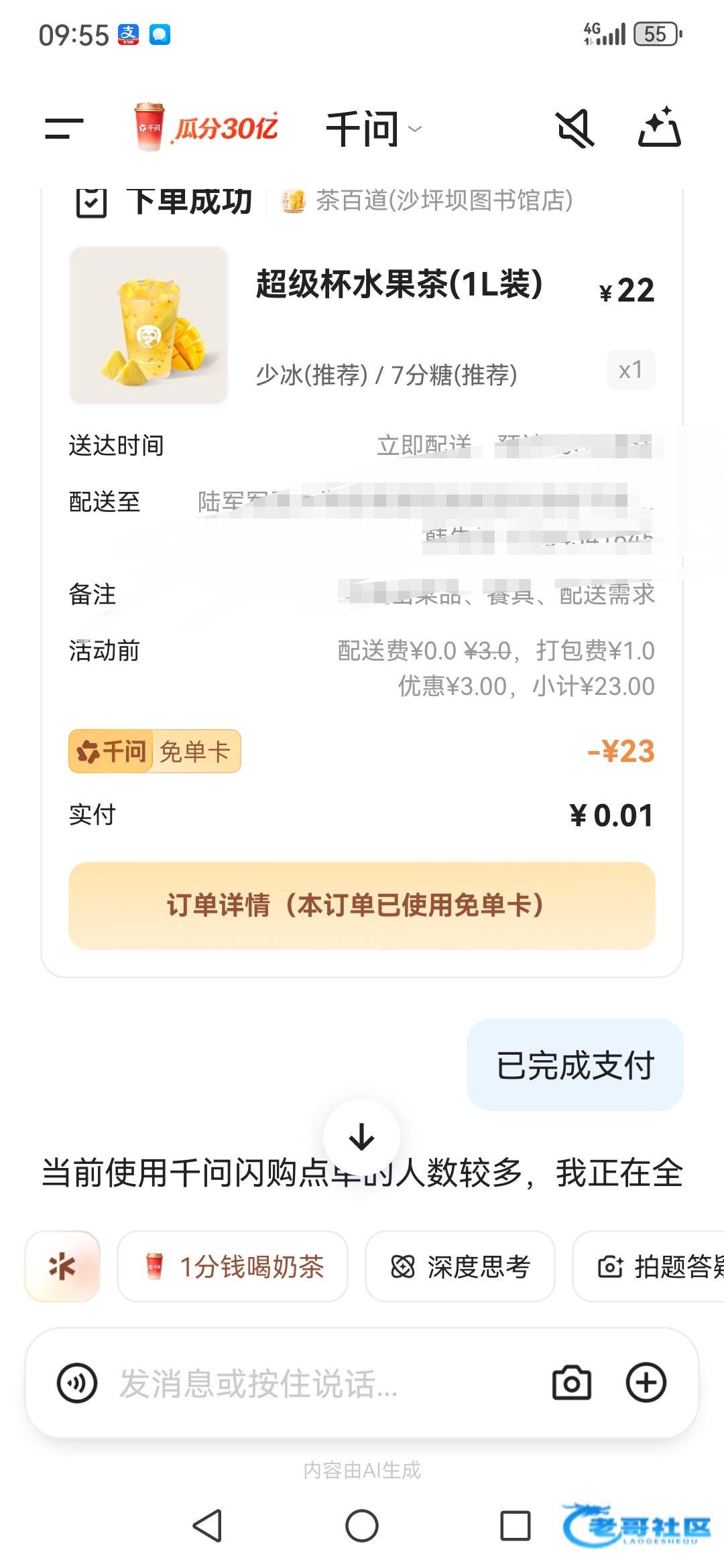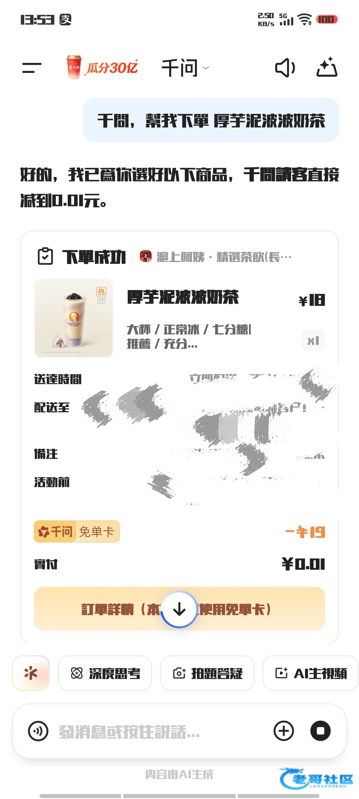【千问白嫖奶茶炸鸡等等】