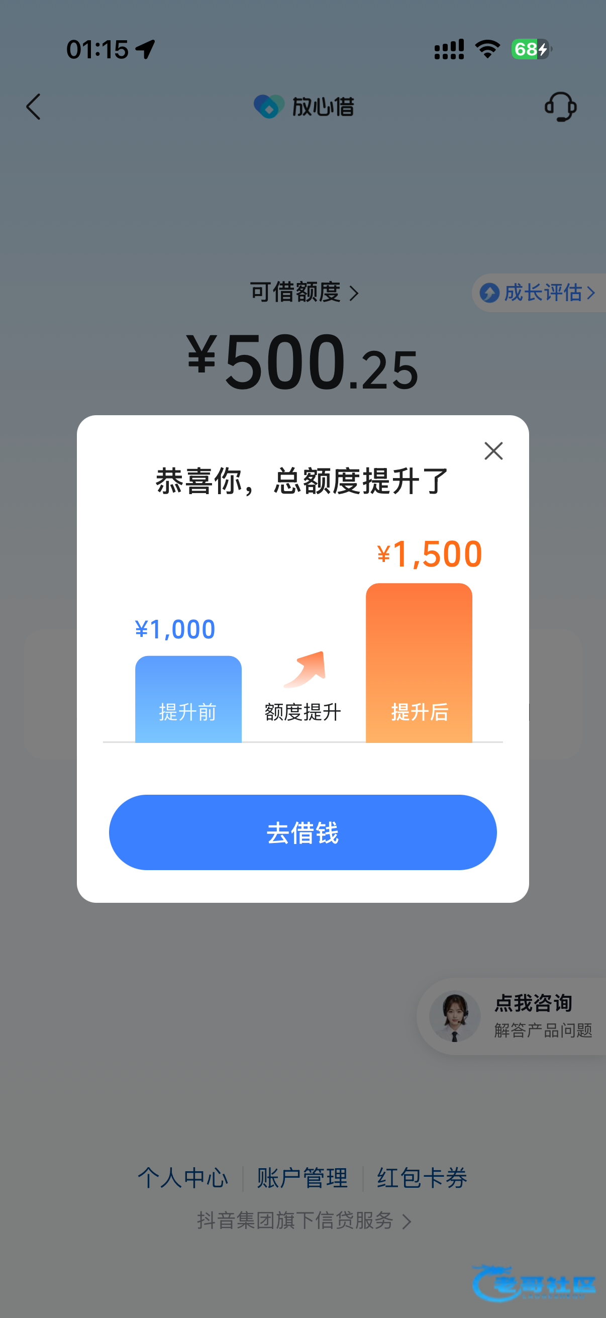 抖音放心借有额度的,现在去重新上传一下身份证信息,有大概率可以提额度,我提了500