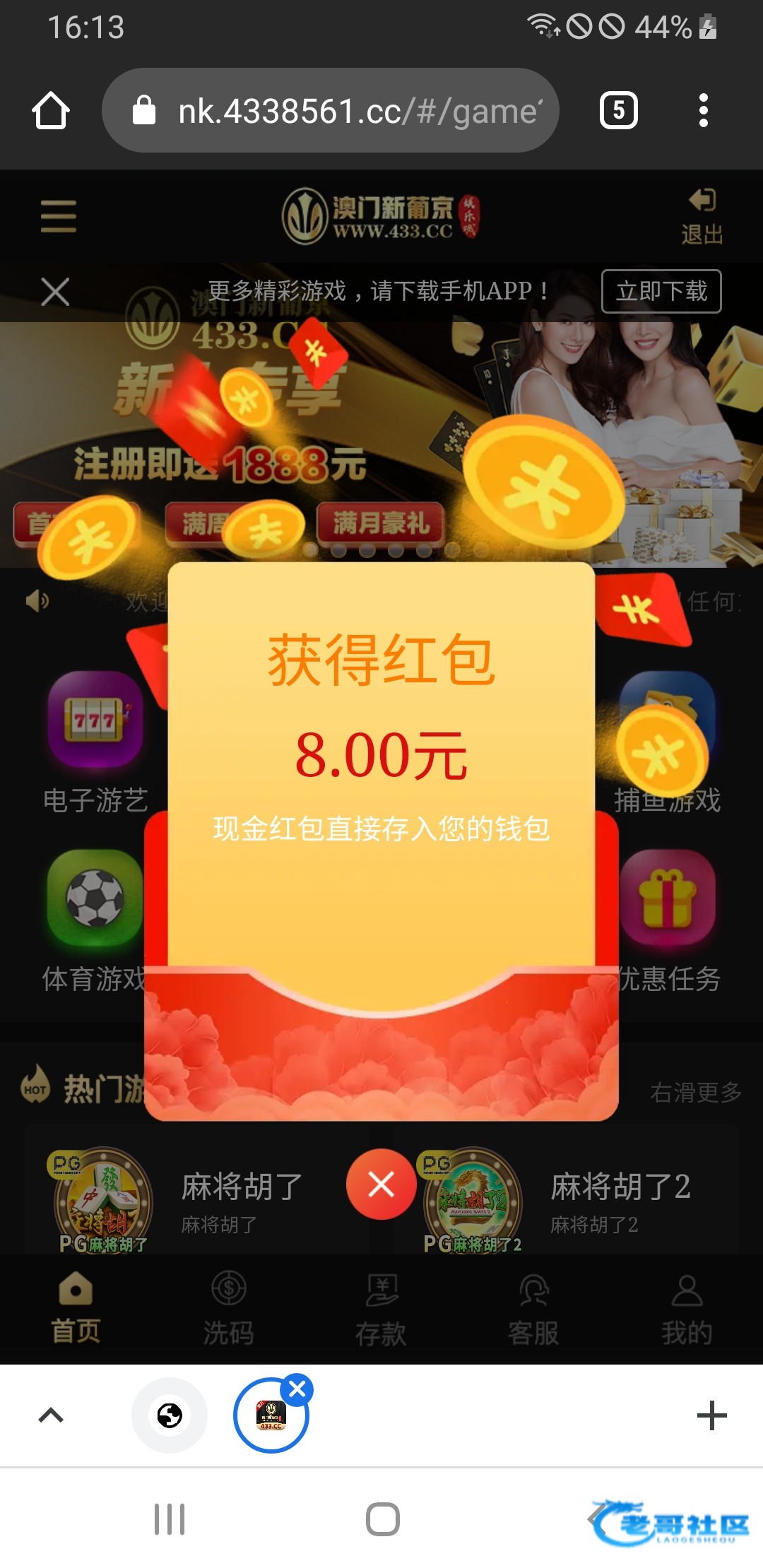 官网 433.cc 可以登陆看看,没有的话你现在登陆过几天再登陆就有回归了,我之前一直没登陆没收到有彩金,前几天这系列的一个个的都登陆了一遍,这几天陆续这系列的都收到电话了!10个号8个都有回归彩金