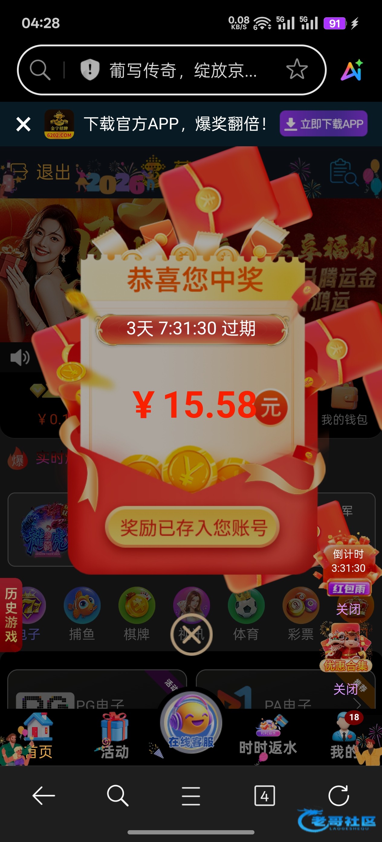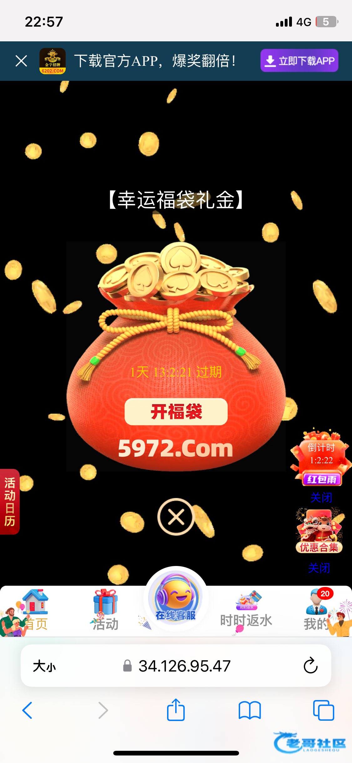 前两天领了鸿运金 今天上去又有福袋了 我差不多15天没充了 网址8733.com。充值过的去看下 没有充值直接无视