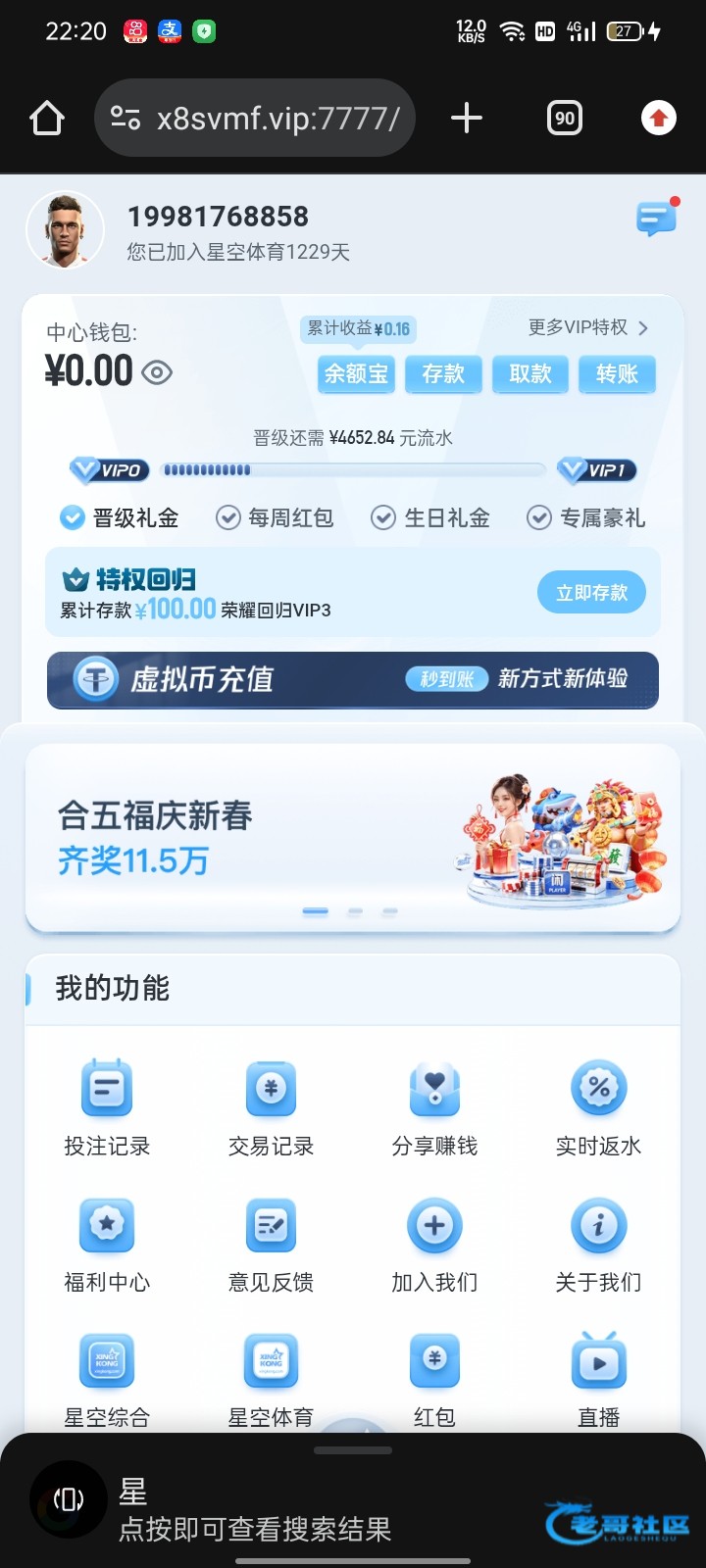 星空又回馈彩金了,登录点击福利中心看有没有88,有的话找在线客服要专属经理联系方式申请双倍,大概审核48小时派送,6倍流水提款上限是彩金的三倍,已出款到账