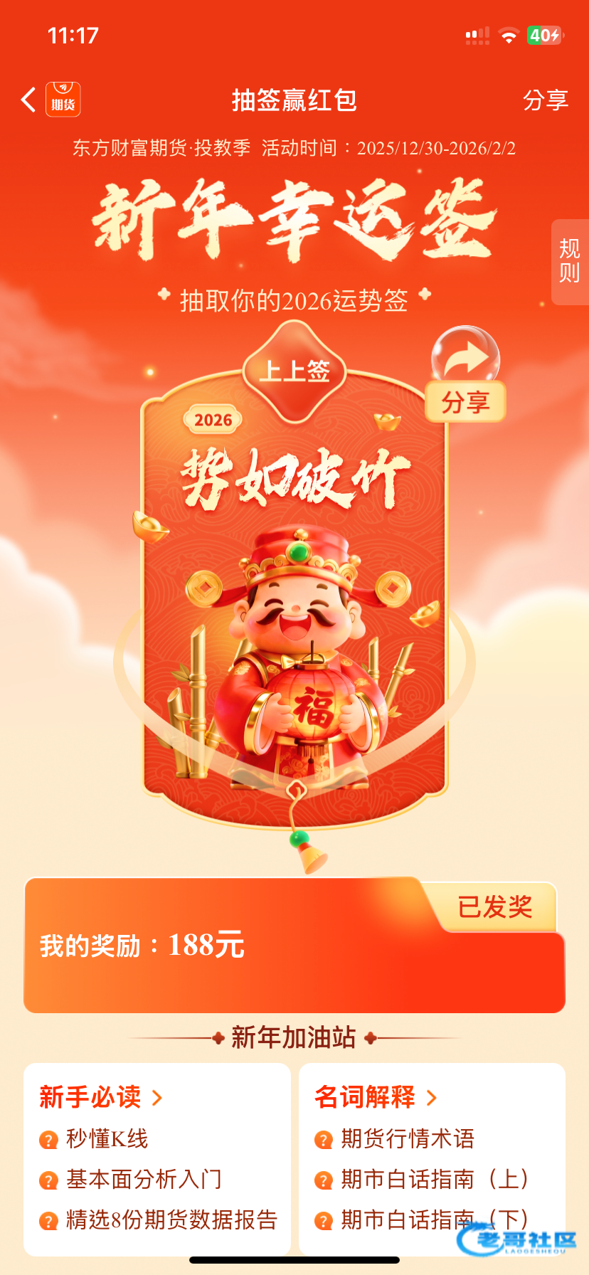 之前有老哥发过了这个东方期货抽188 有的老哥抽到 有的没有抽到 时隔一个月的等待 也是发货了 抽到的老哥去看看吧 188到手140 扣完税 还有压的资金10 然后就是140 明天就可以直接提到银行卡就行 抽到没有开户的老哥拍大腿吧