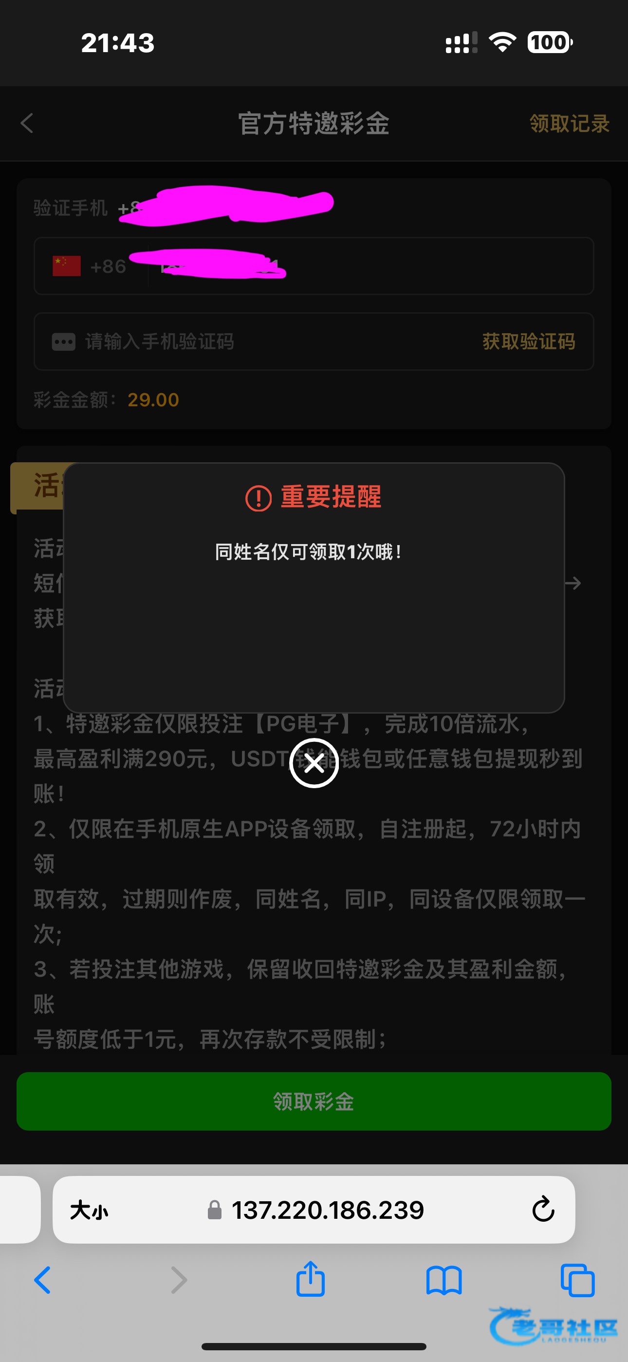 操他妈个逼,同姓名只能领取一次,卧槽他妈的,我都没领过!