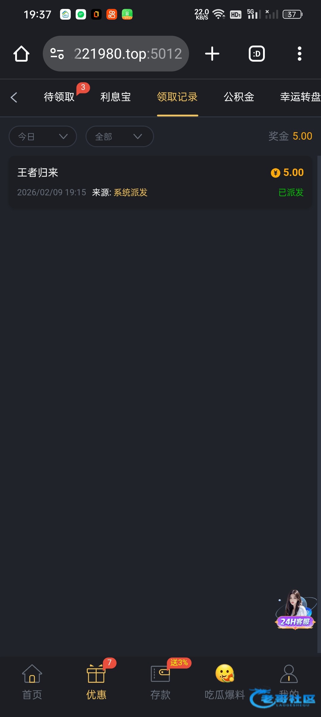 这台子注册了两个月 断断续续冲了几千,没提现过一次