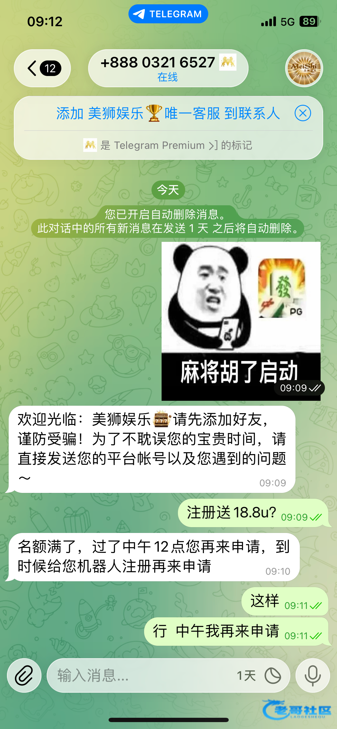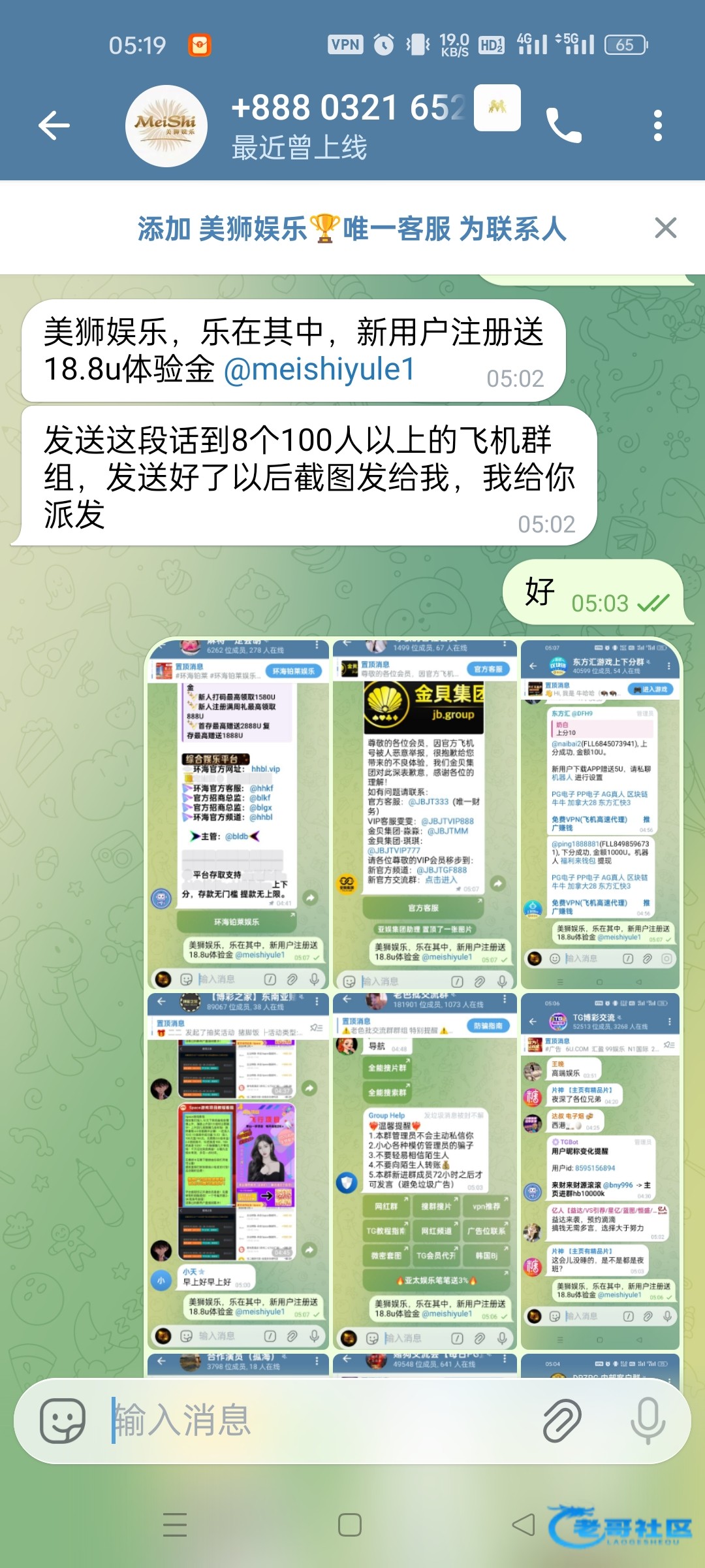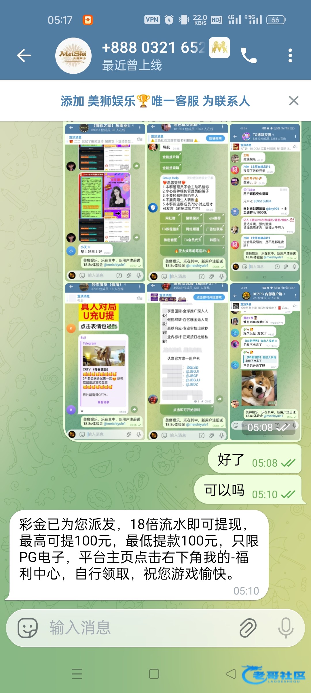 飞机联系@meishiyule1 领取18.8u彩金(要转发十个群截图,随便发一下截图撤回都可以),最低最高100u出,我没打出来,领到出款的兄弟们给个反馈