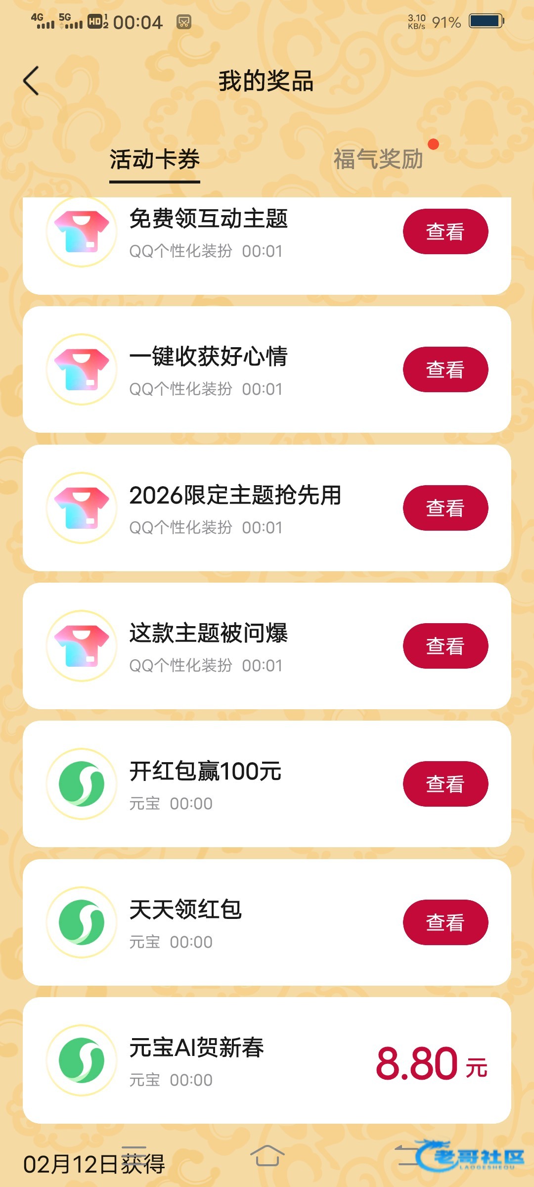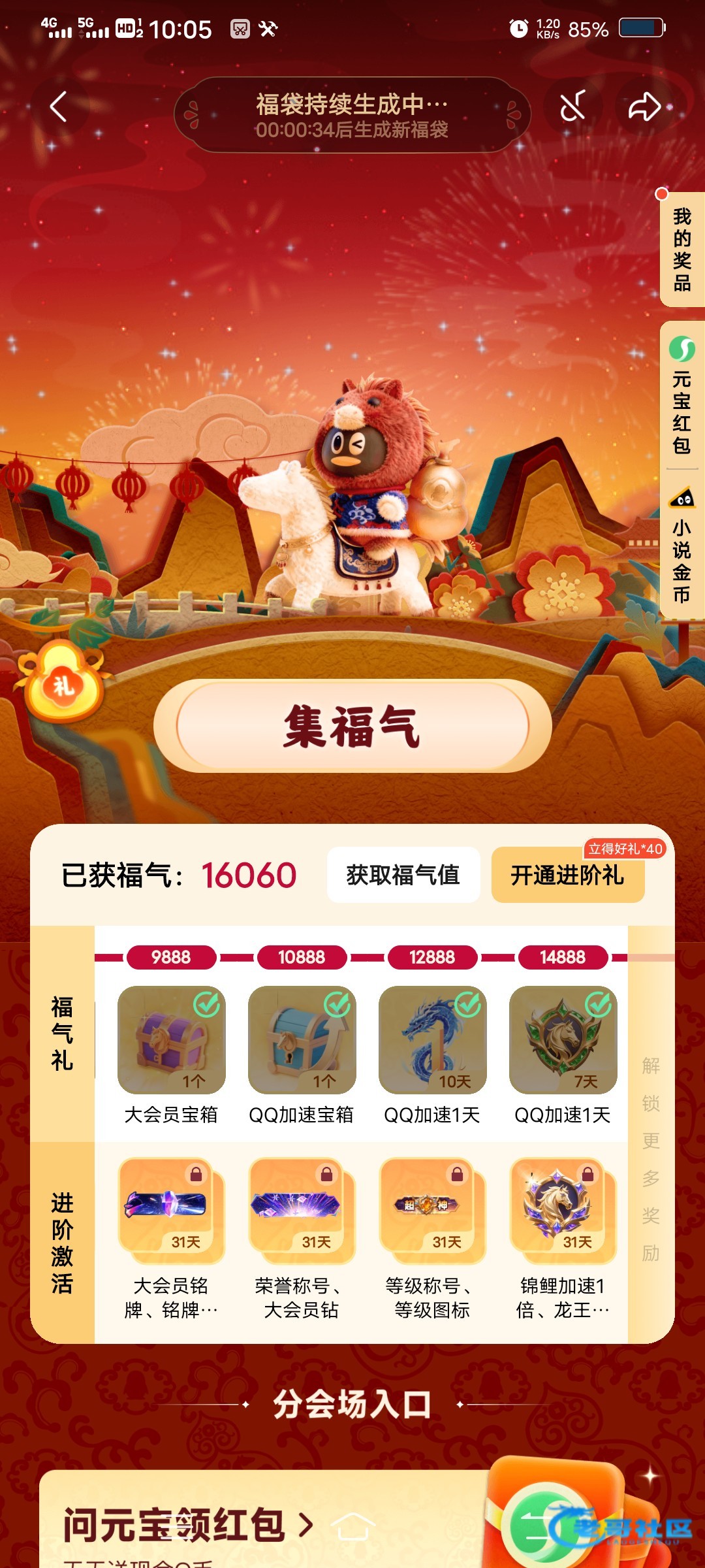 入口qq首页横幅,qq邀你领春节红包。 他福气礼包是自动出现的。一直点就行,有钱就领钱,别的有用留,没用无视。估计现在没水了。刚才水好大。反正没事点几个福气礼包,开不到钱就想起来了去点。反正春节期间每天都可以进