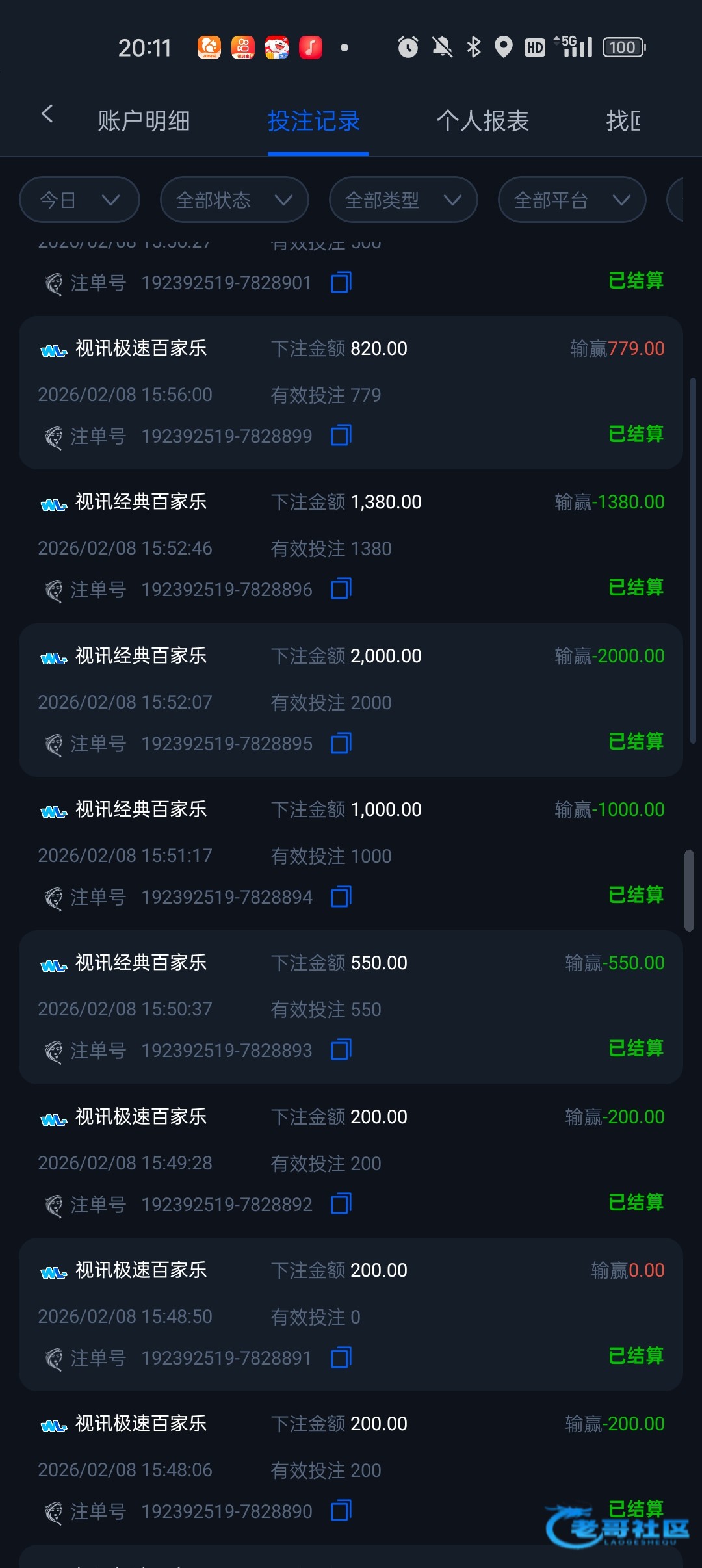 100上了两个w.两个平台都盈利了后面又送给了一个野鸡