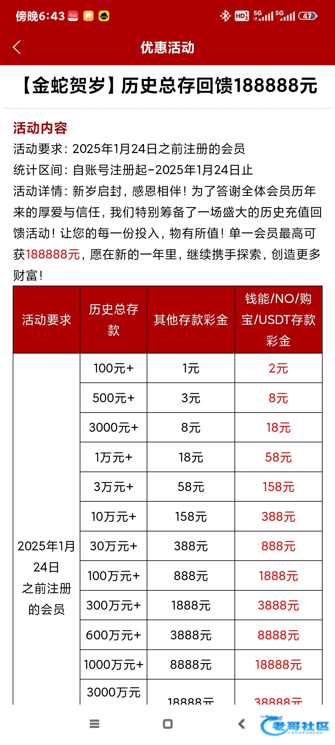 活动都出来了讨论个鸡巴,年存款和每天两三块的红包。垃圾
