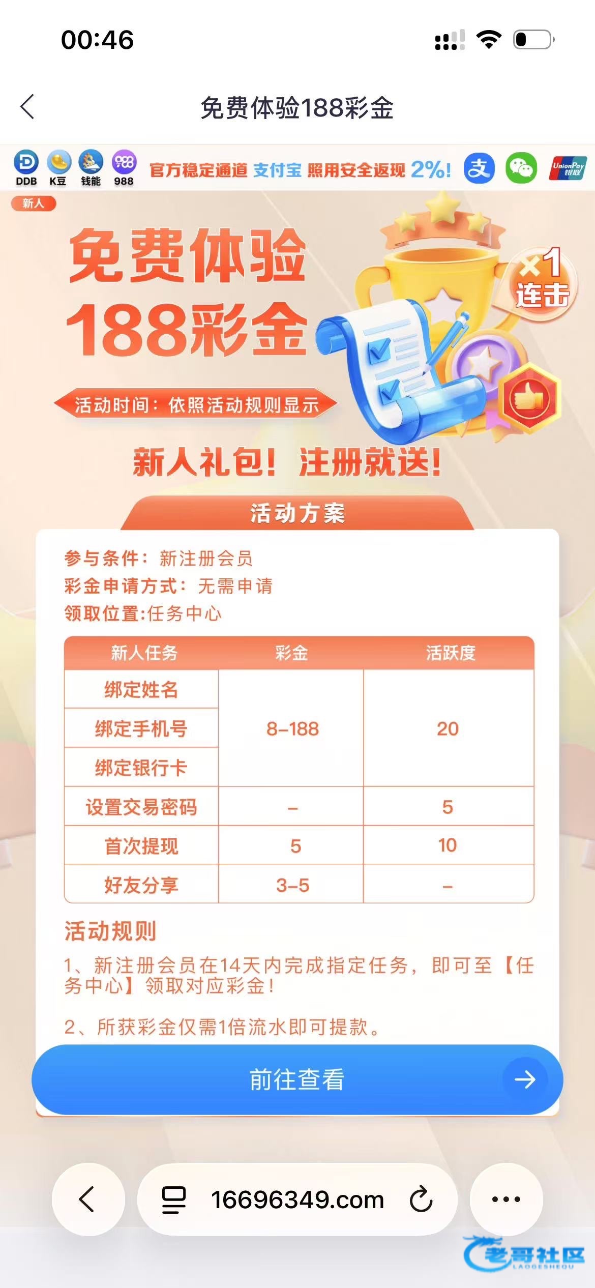 链接0910.com注册了直接绑定银行卡就可以随便绑定手机号然后去每日任务领取,还有一个8806.vip一模一样的领取方式,挂逼的老哥看一下