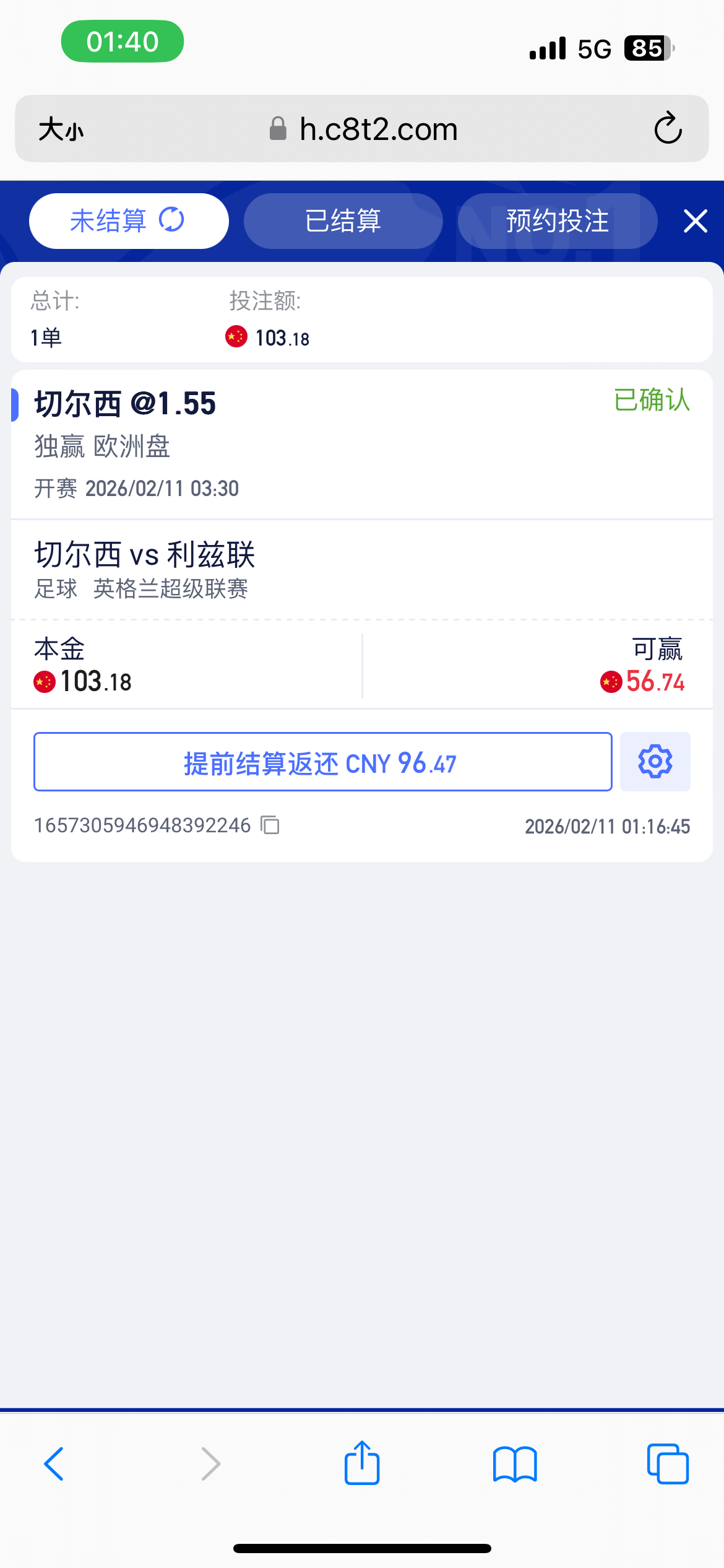 切尔西 打个我没听过的队 独赢1.55蛮高的押了。今天还有个曼联比赛说是曼联已经四连胜了 马上五连胜,我没下。