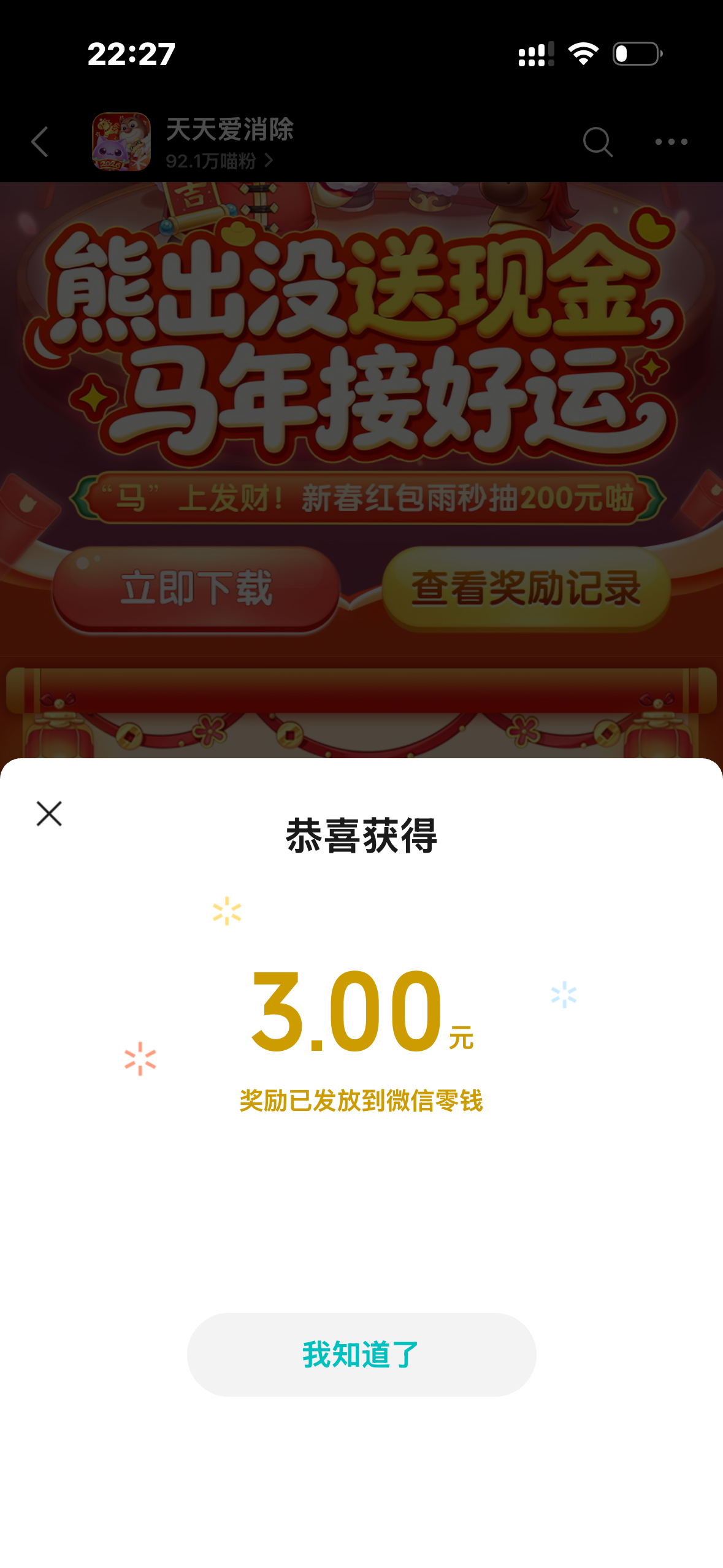 APP搜索天天爱消除下载玩一局必得3元红包一分钟搞定切记要用微信登录