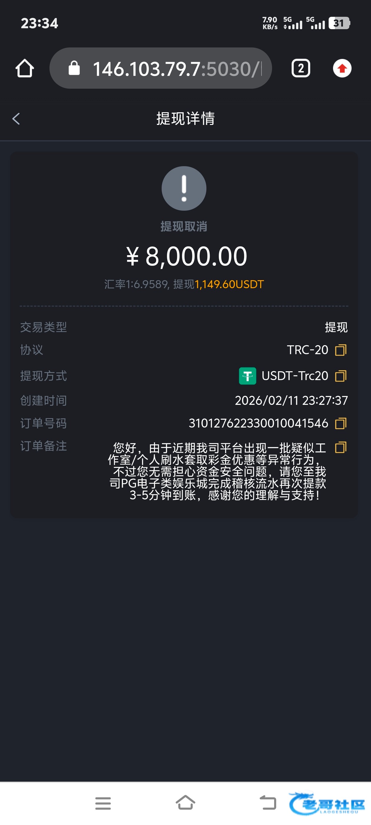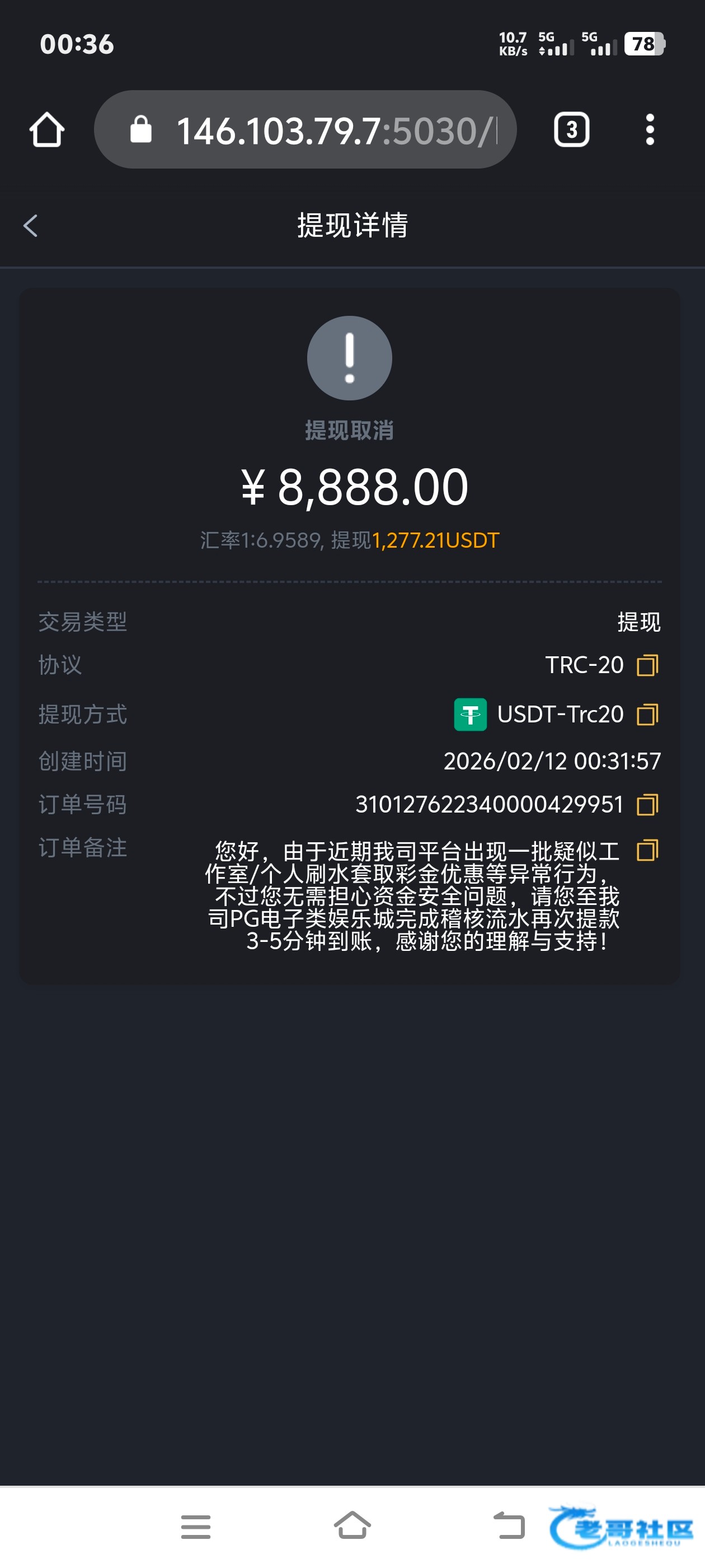 5号充值1万多全输了,今天充5000,打到2万2,提现就显示如图了。客服是各种墨迹,不想给出。年底了,狗庄各种理由黑。
