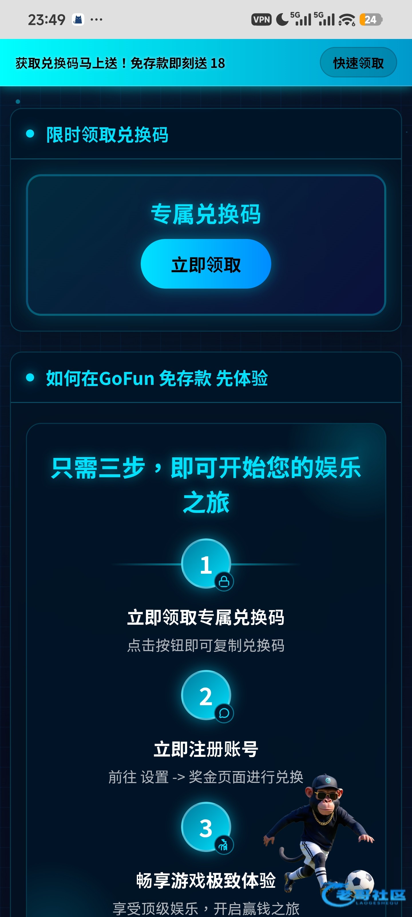 获得兑换码,注册点头像,下图兑换