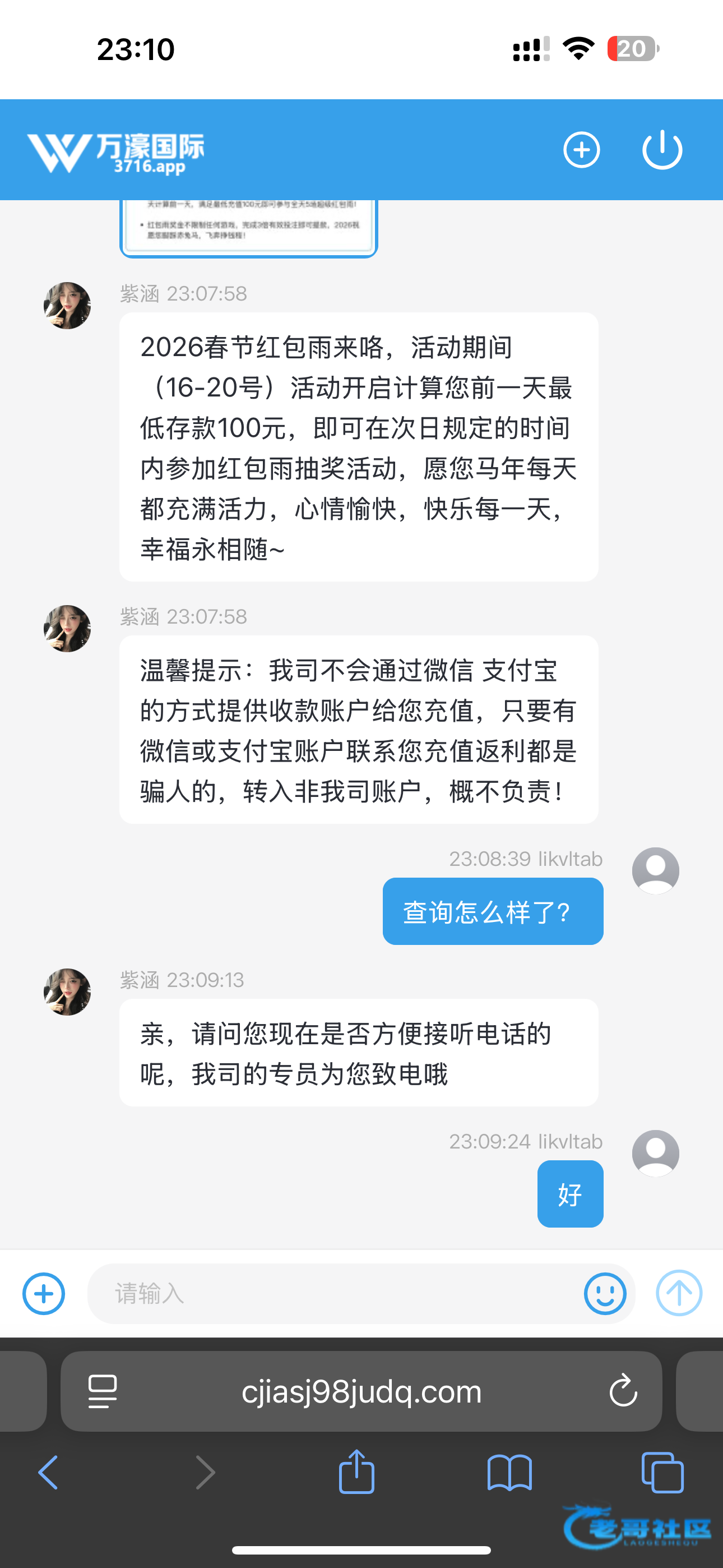 我靠我接到电话他说没有回馈彩金了,只介绍了一下过年活动