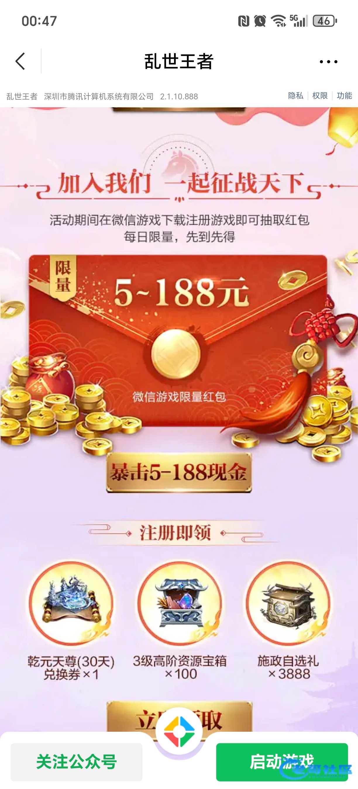 不废话步骤上图,微信游戏中心搜索乱世王者,下载注册不用玩送5块微信红包,记得领一个v删除游戏,重新下,多v多噜,可以单设备无限切换,我撸了16个v