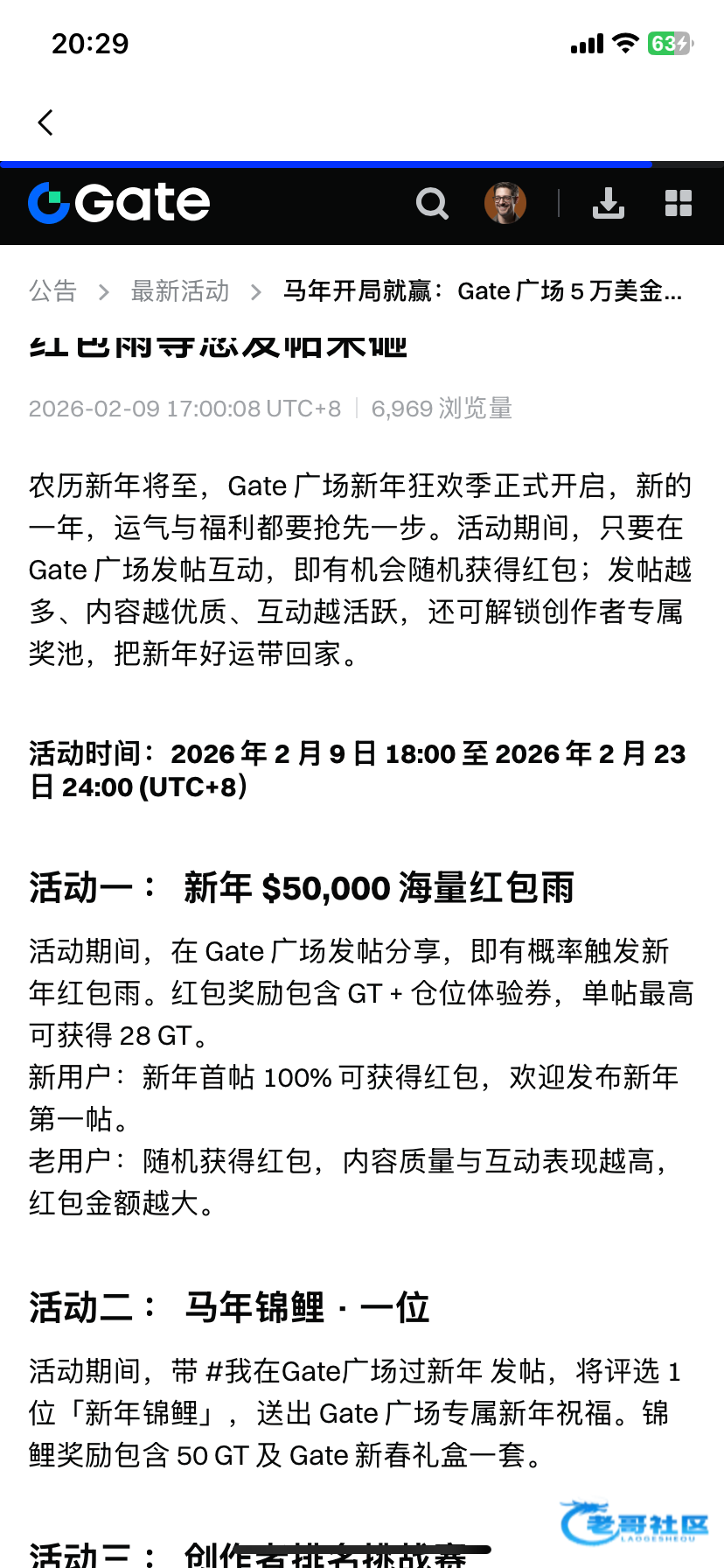官网链接 https://www.gate.com 公告说26年新用户首次发帖百分百中 新用户可以去试试 交易所类型的 我老用户没领到 仅交流分享一下