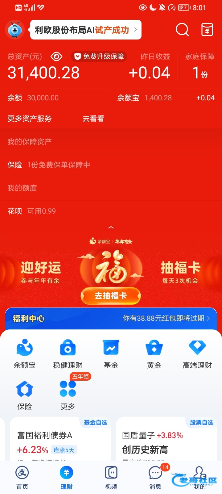 那我也发个帖吧一切都要从2月2号我从抖音极速版提现了15块钱开始说起,转了五块钱给我女朋友,然后充了九块钱到227皇冠买篮球比赛,打出来差不多300左右,果断换体育台(因为比赛打完结算快),然后后面几天陆陆续续每天赢几千,一路打2w5,然后欧易做合约赚了一万左右。总的来说,九块钱一共红了36000左右,欠朋友的钱已经还完了,这三w块钱可以过个好年了77