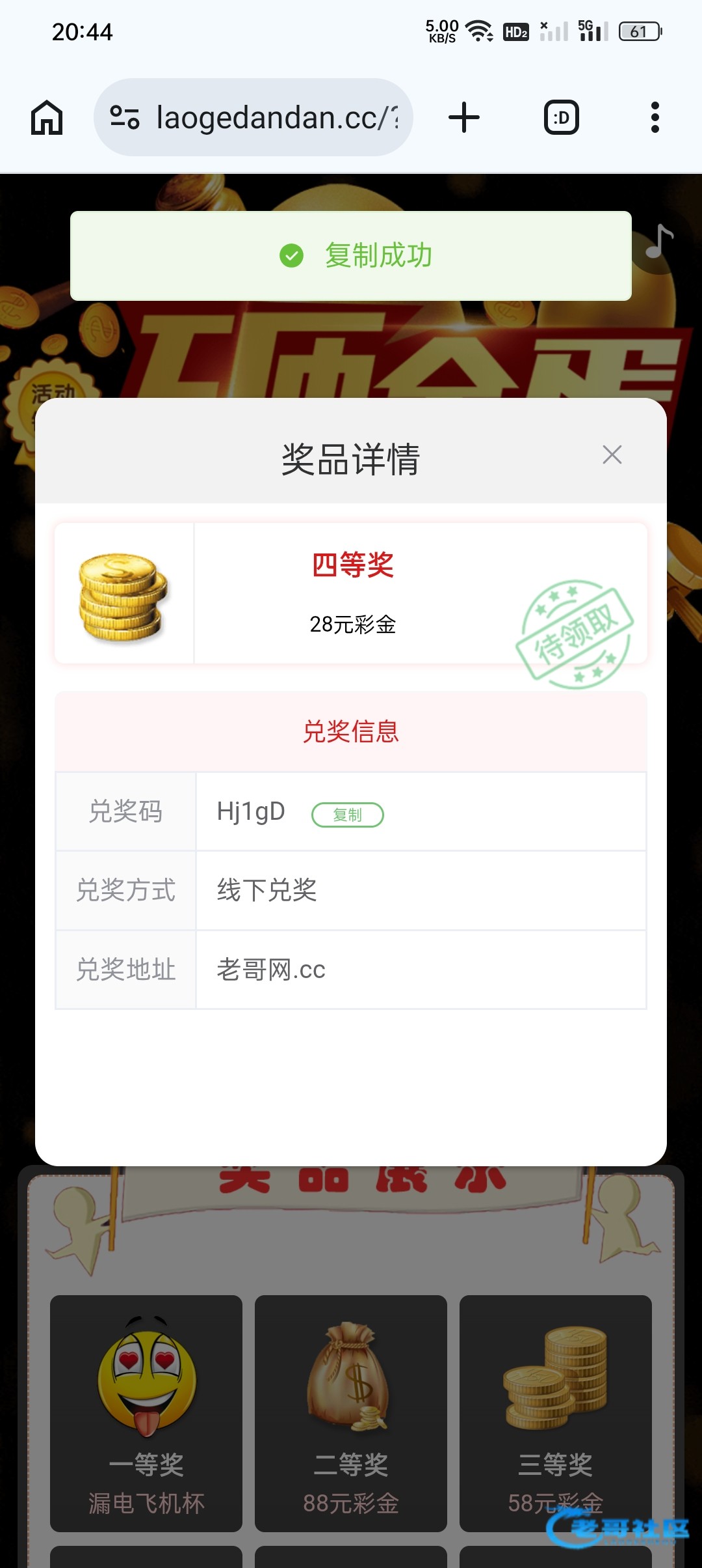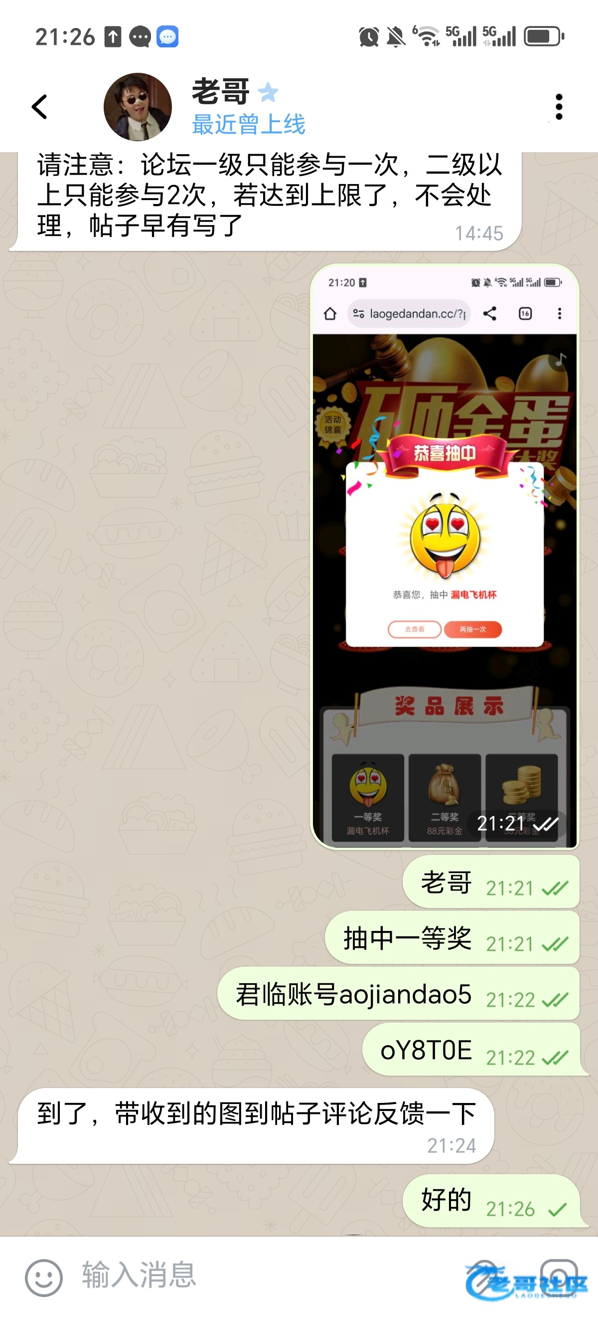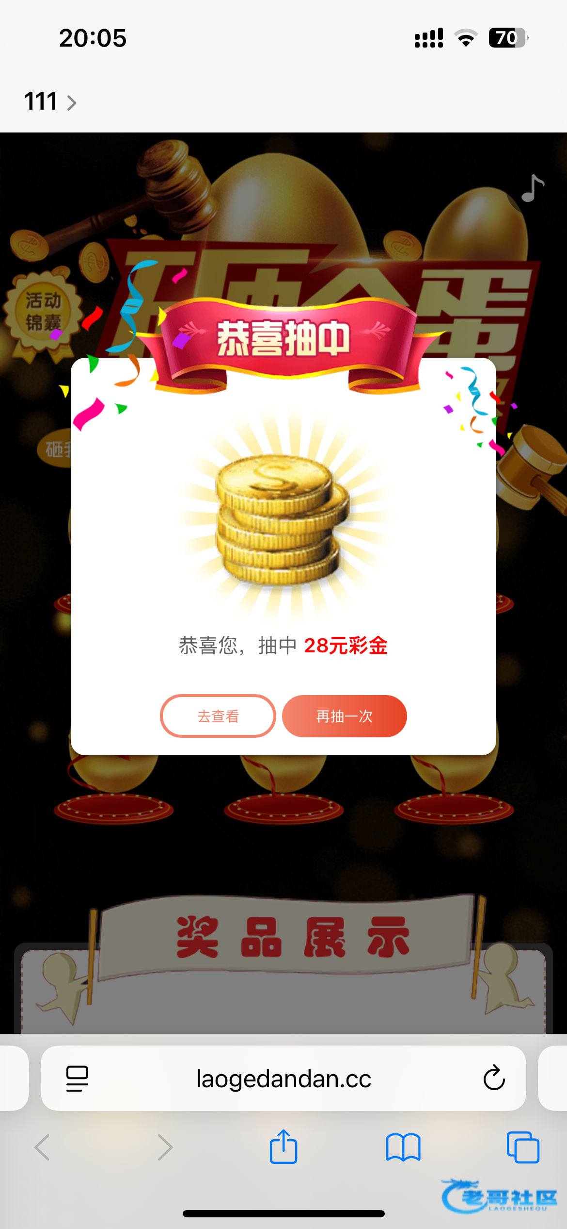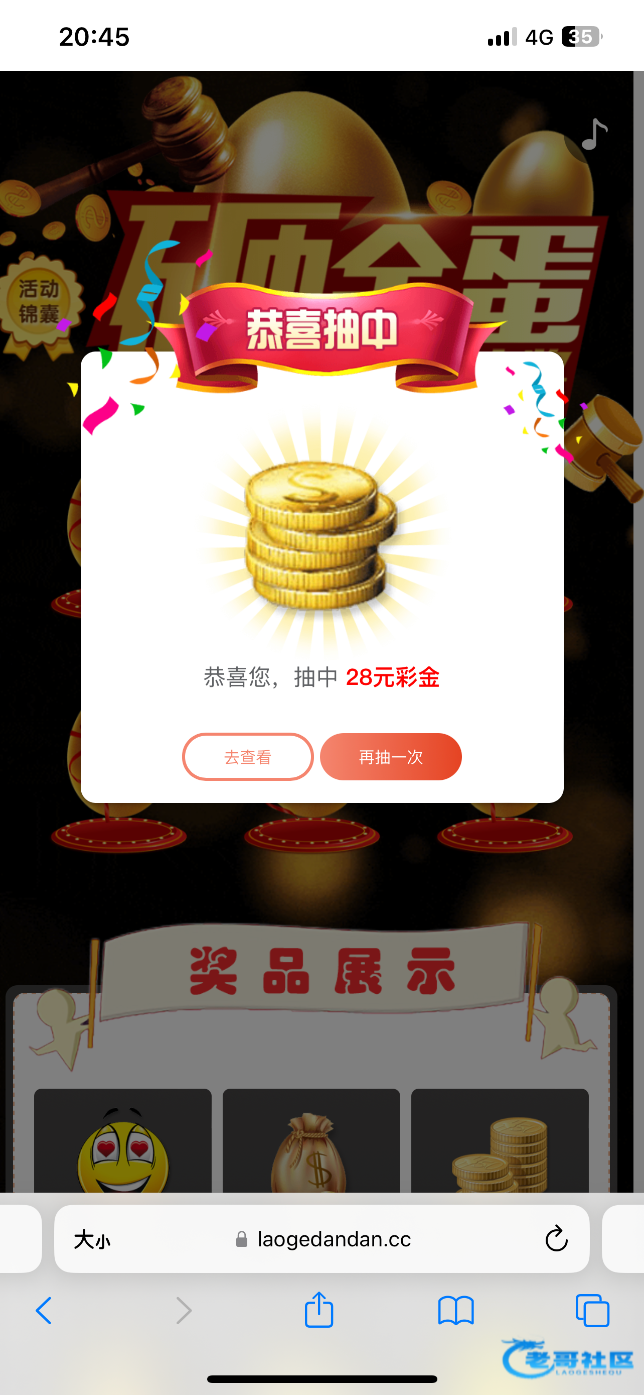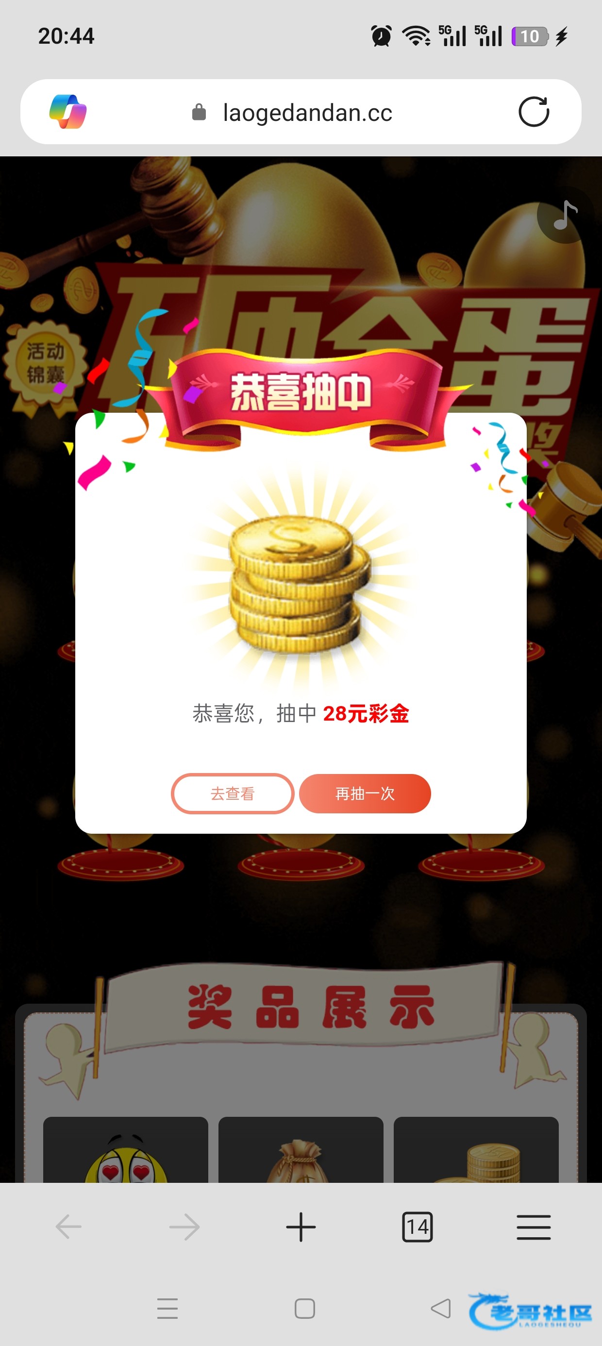 收到老哥砸金蛋28彩金,老哥网越来越好