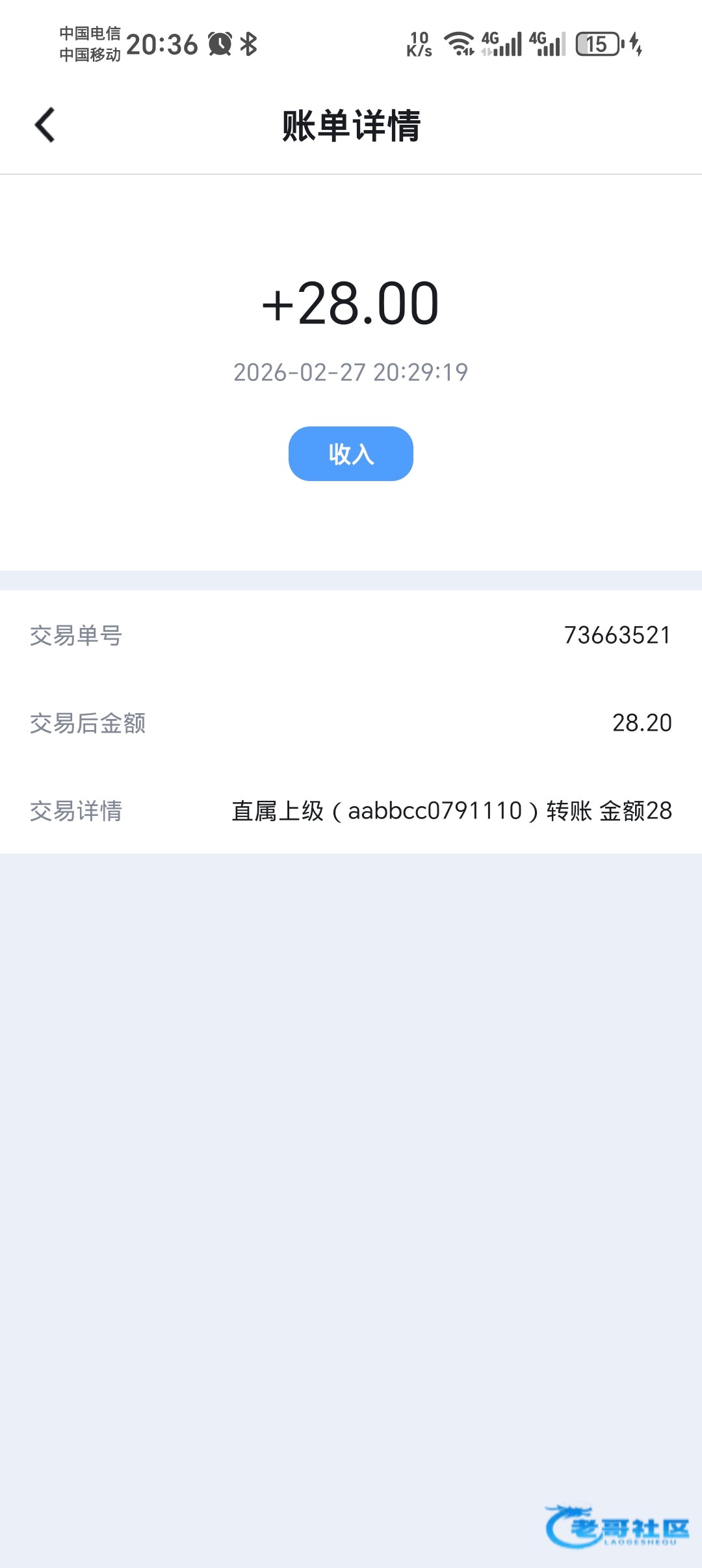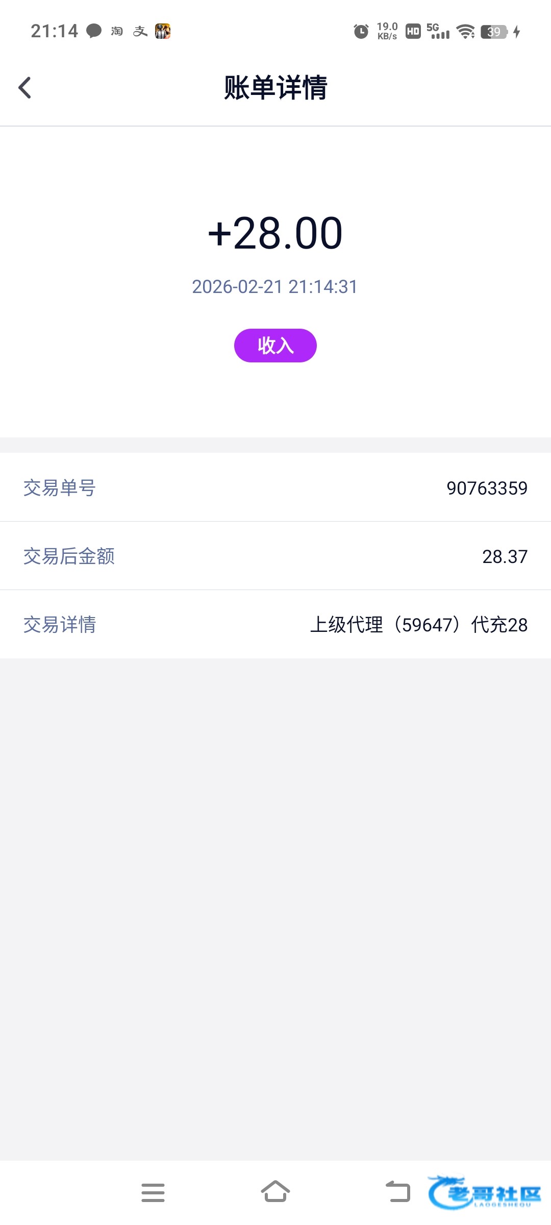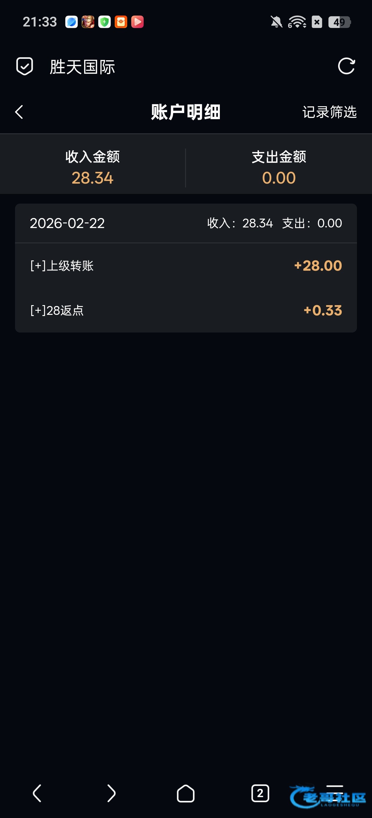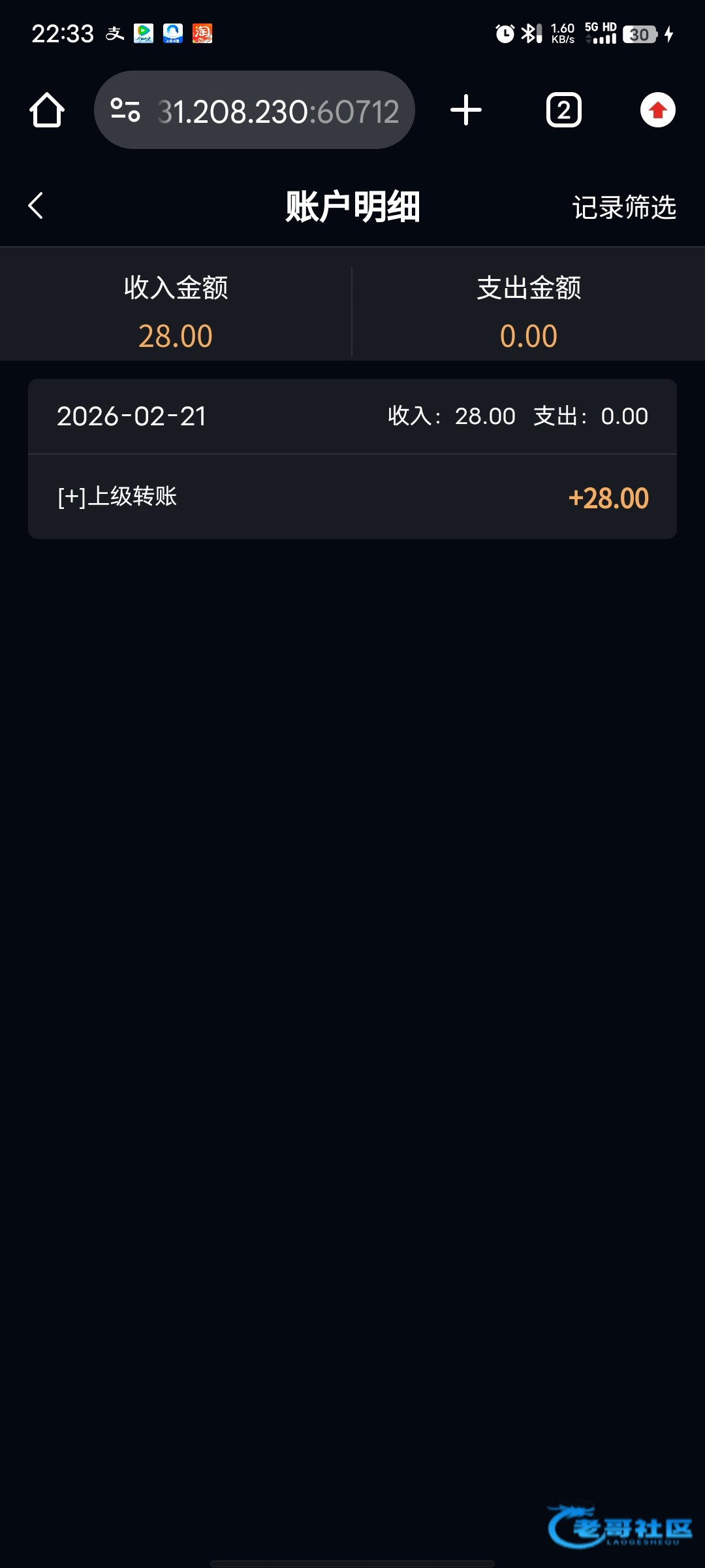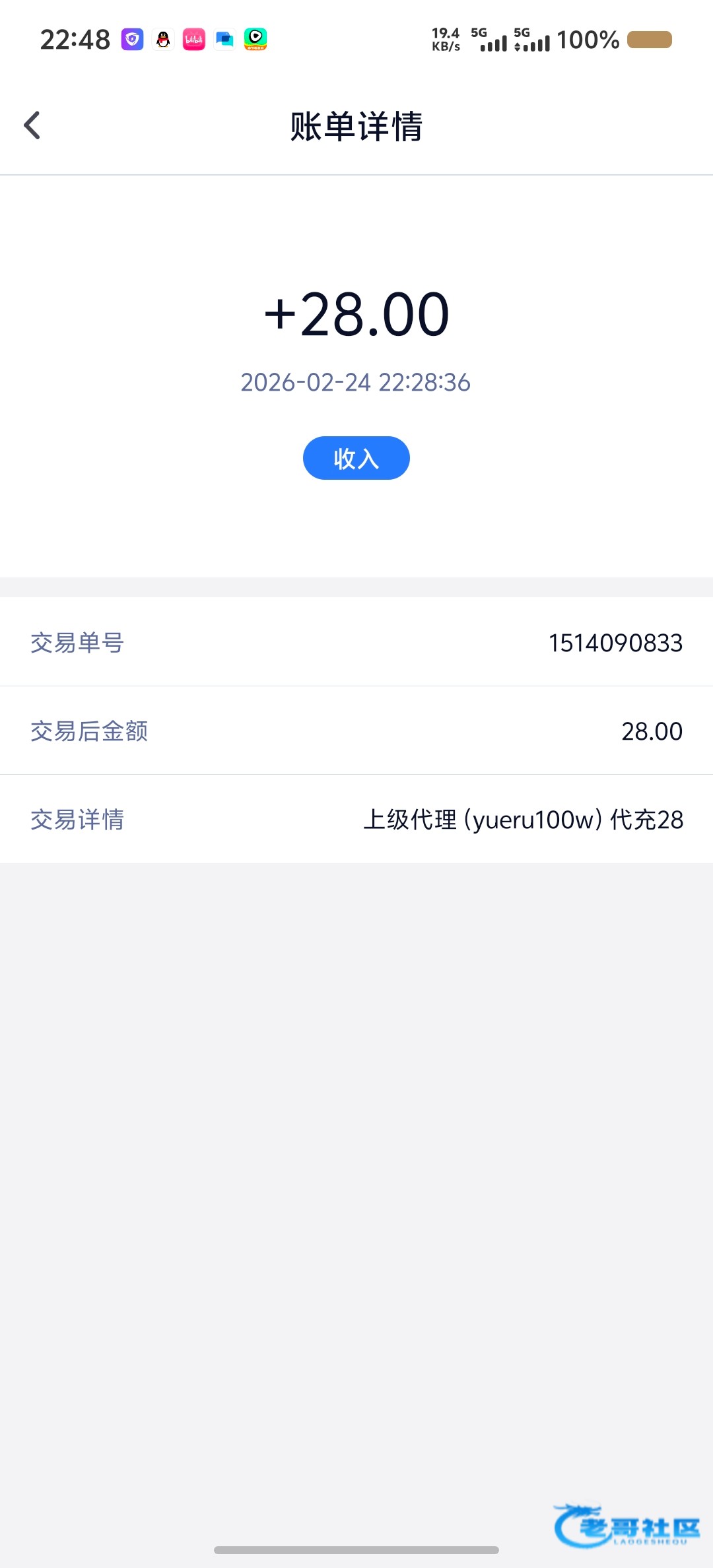 收到老哥28彩金