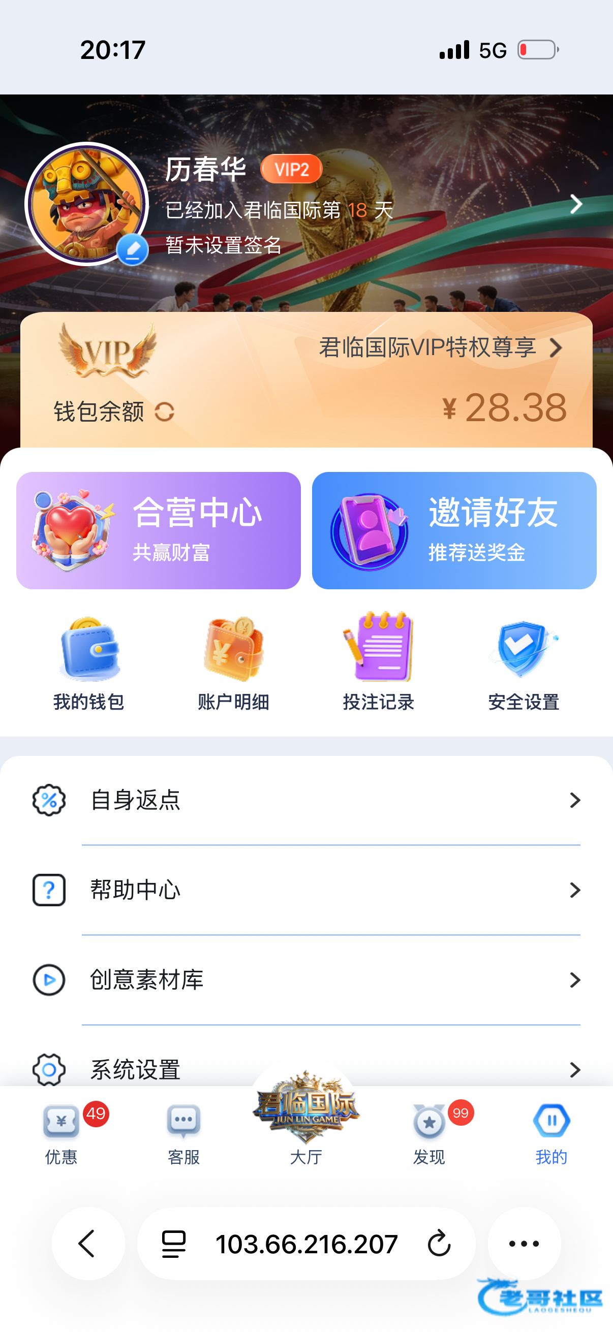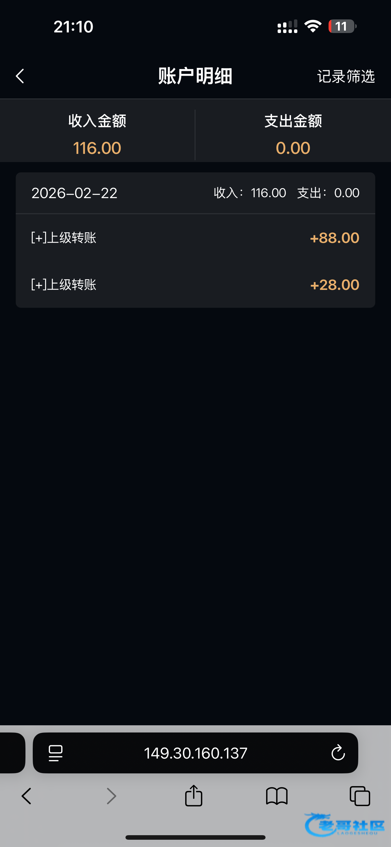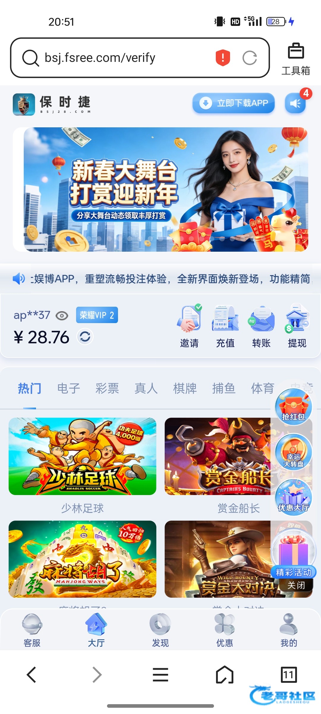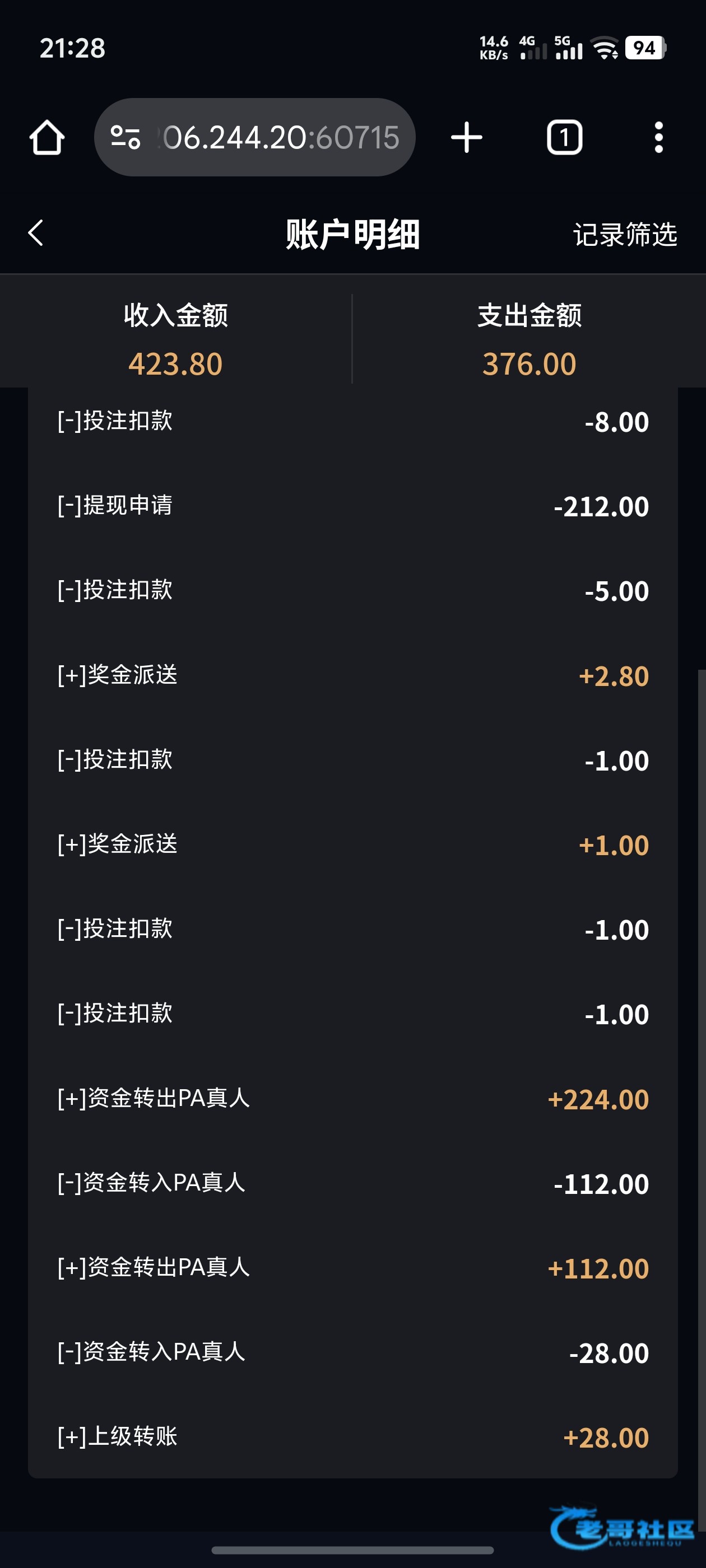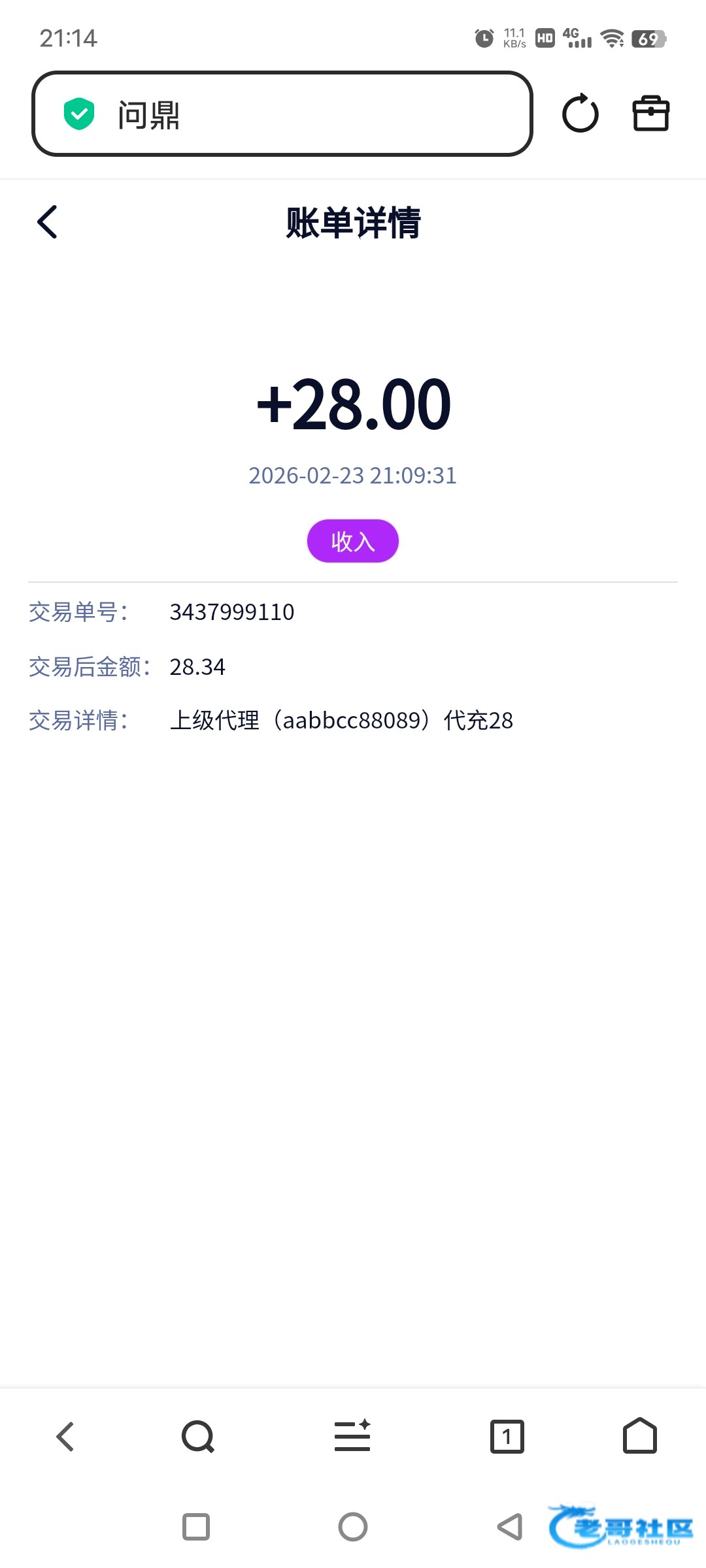 收到老哥28彩金