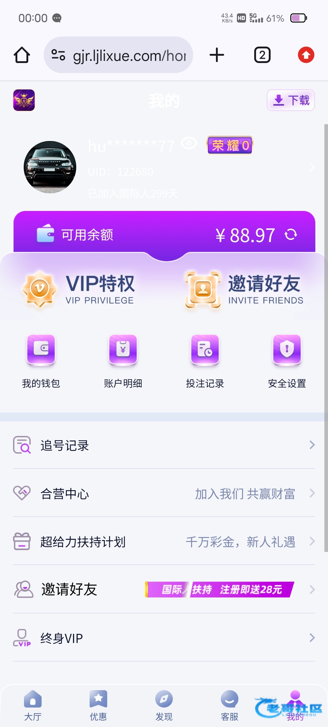 老哥网 .cc 注册菜金(24小时自助领取)!