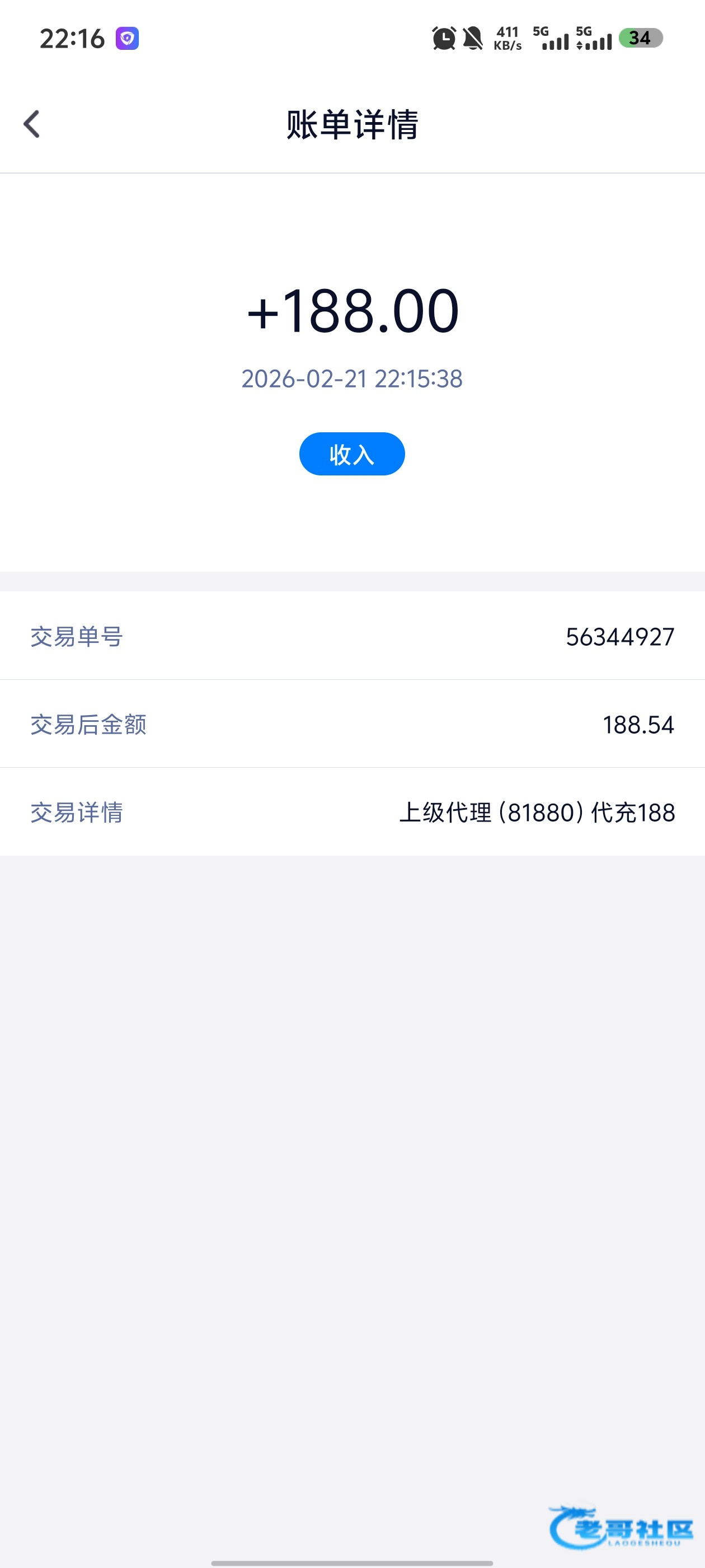 谢谢老哥,收到188