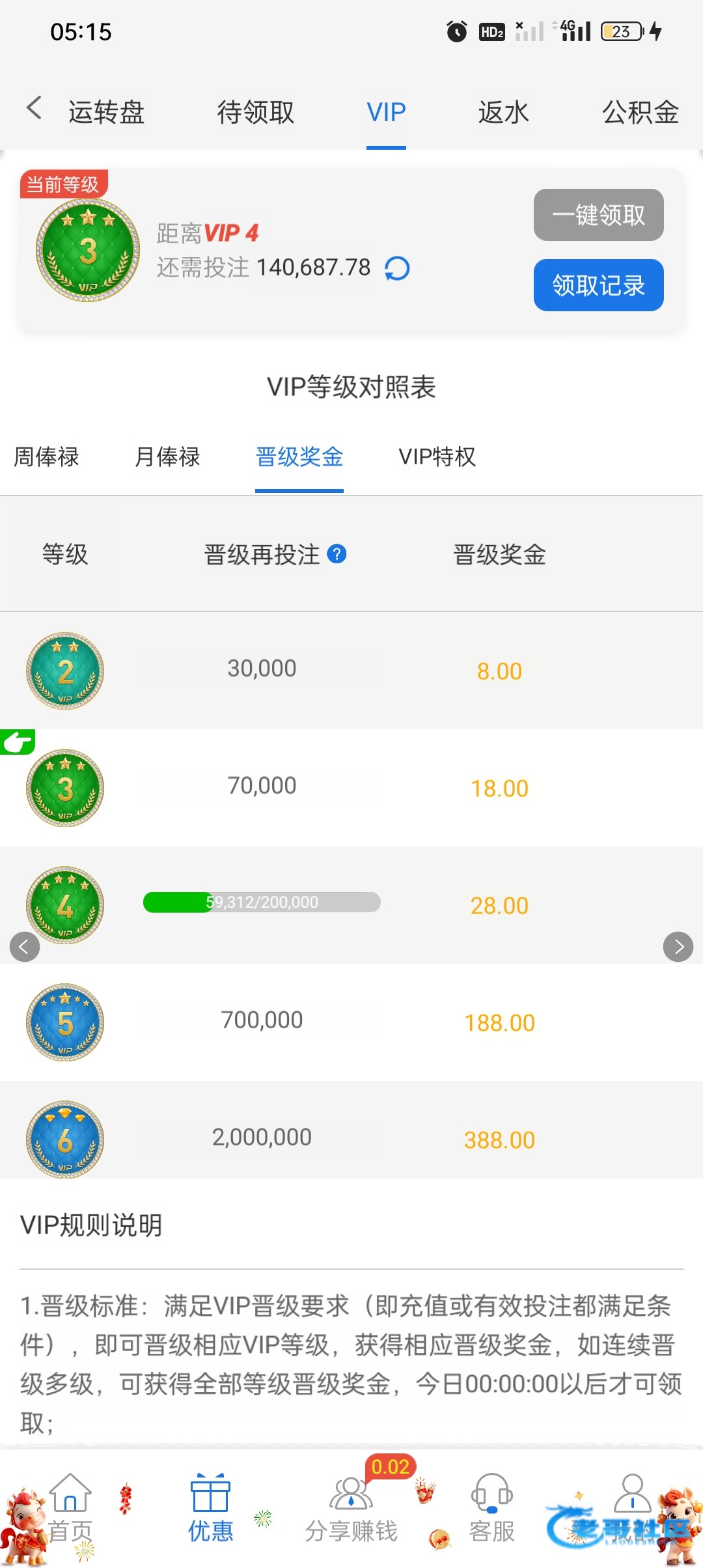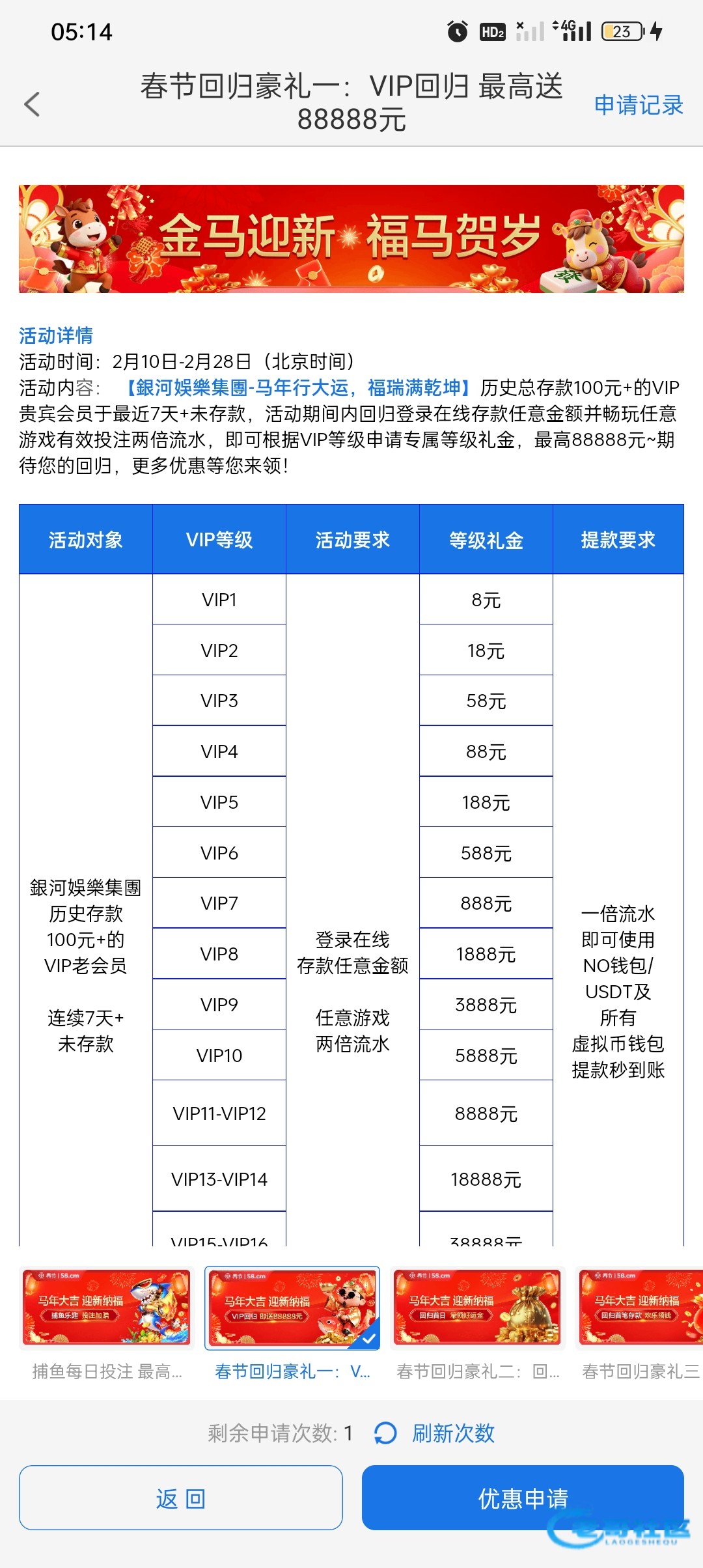 官网58.cm 15号之前充值10块钱可以领等级礼金,然后有会员等级的9天没充值过有流水娱乐过提现的也可以充值十块钱打两赔流水可以申请vip回归彩金