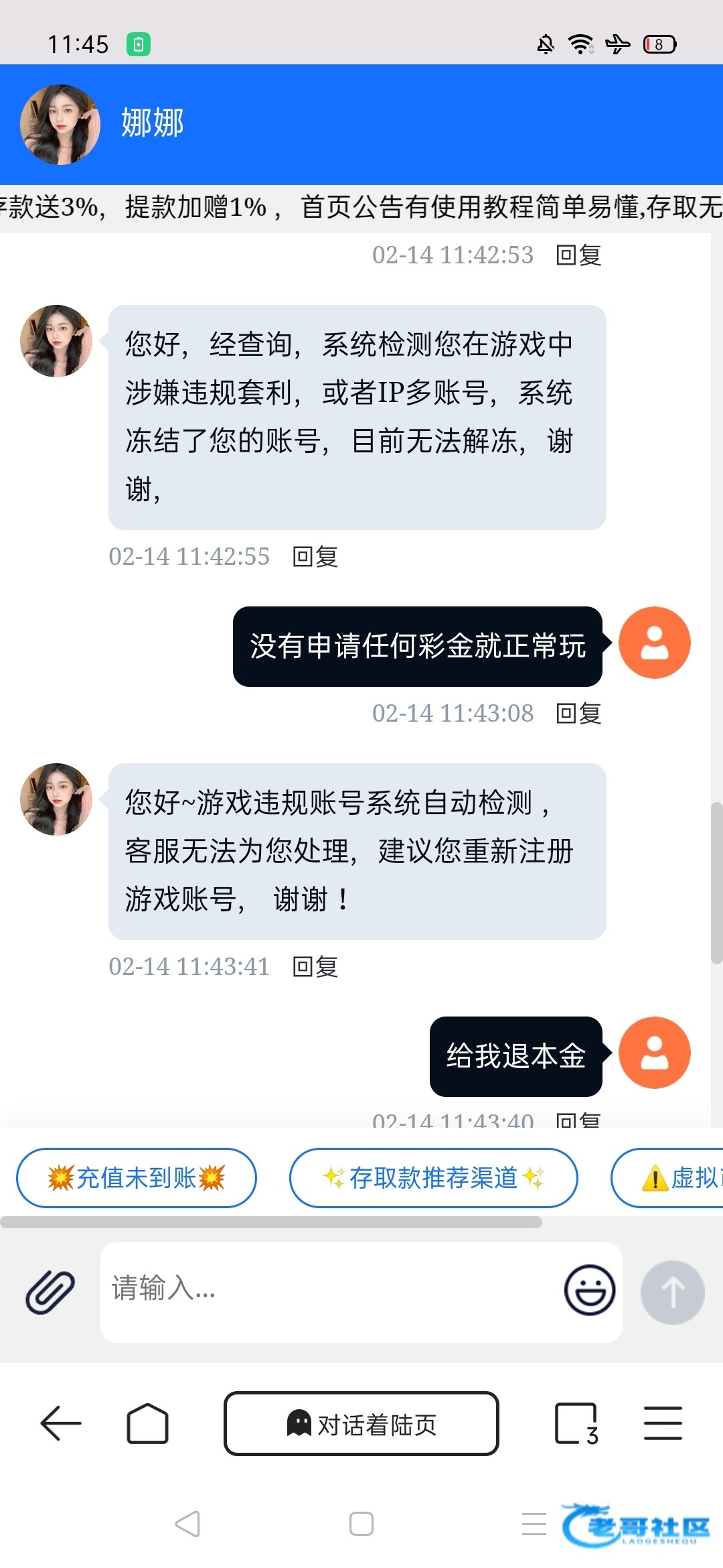 充值都黑 ,没有申请任何彩金 ,正常玩的棋牌 。